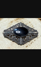 Stunning Antique Brooch w/ Marcasite Gems & Black Agate Centerpiece - Victorian Revival
