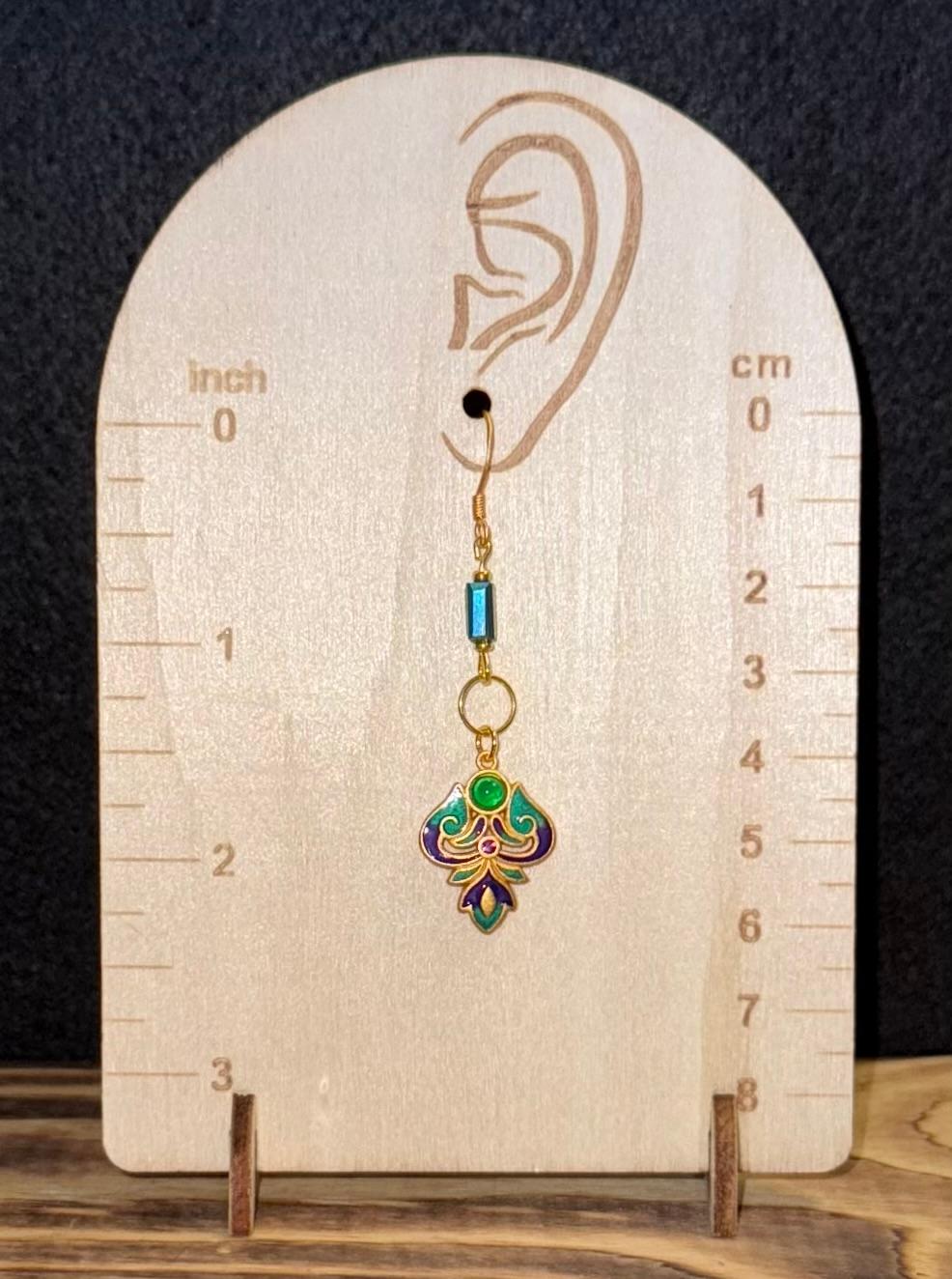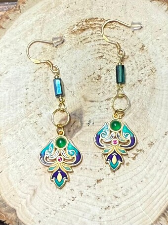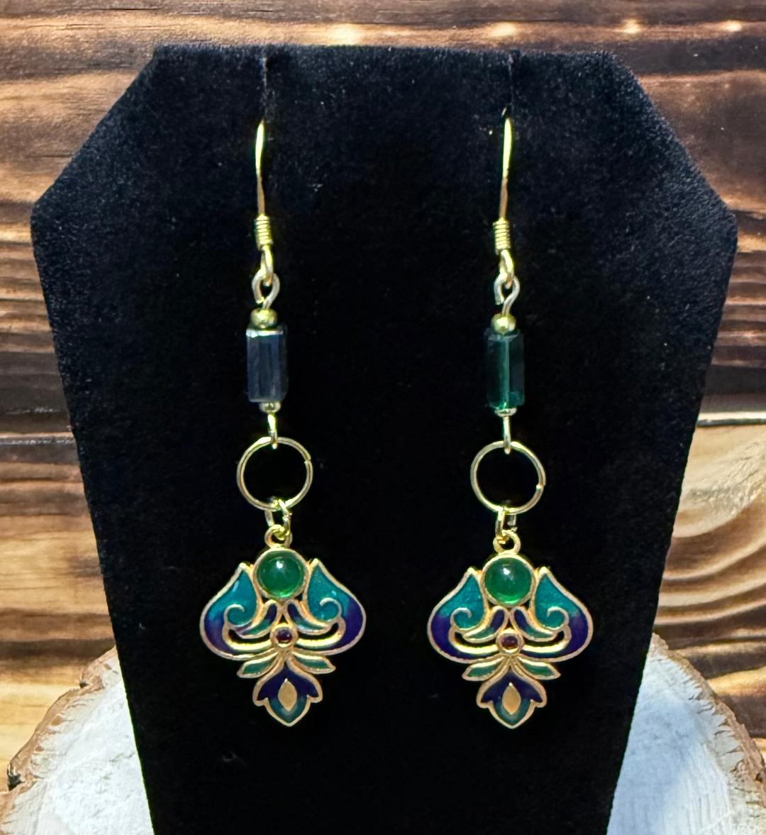 NEW TURKISH INSPIRED 24K GOLD PLATED DROP CLOISONNé EARRINGS W/ TUBE BEADS