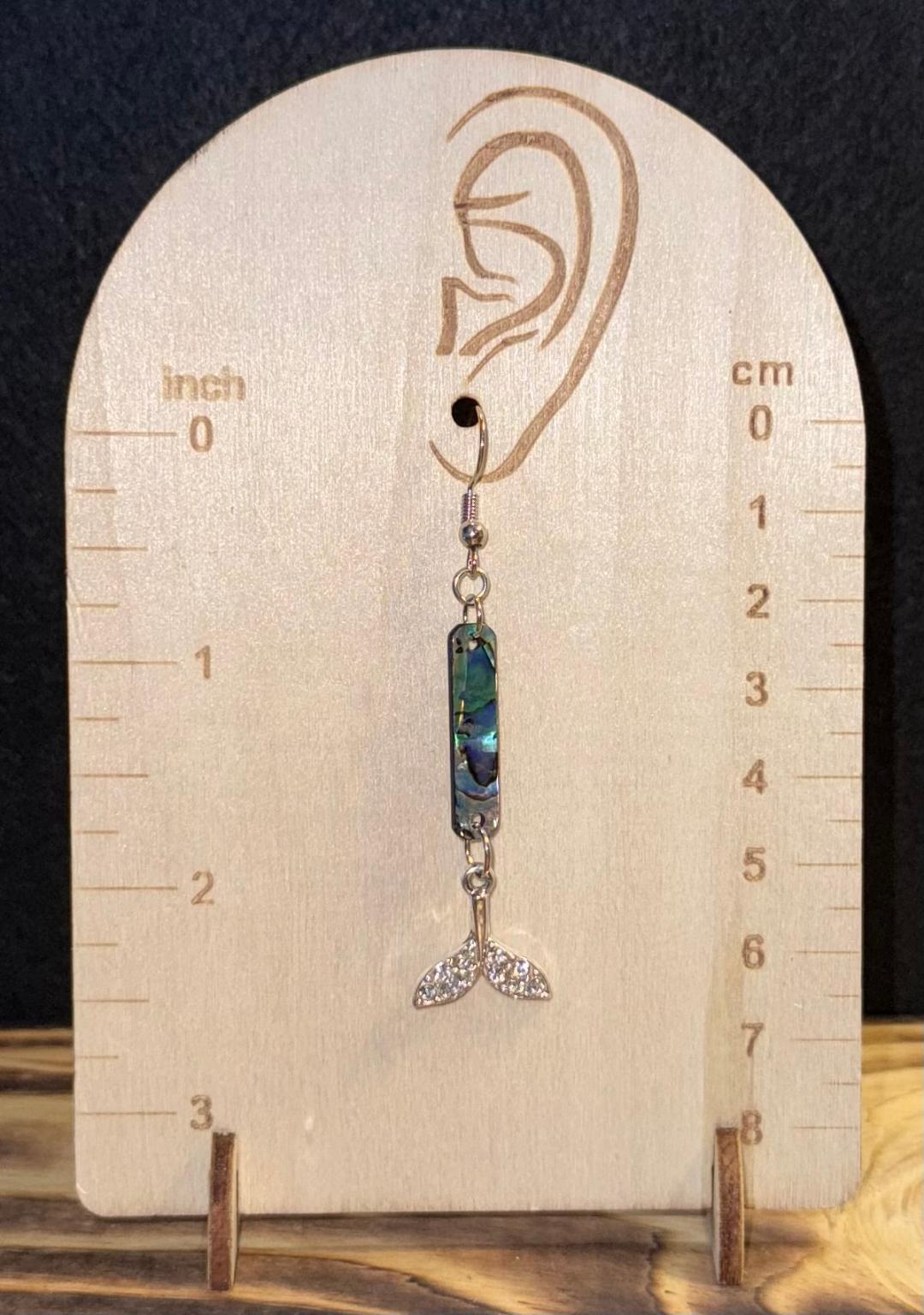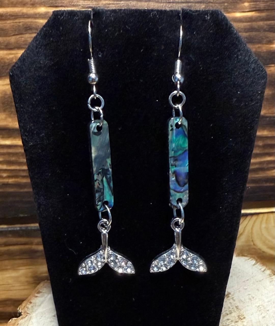 NEW MERMAID RHINESTONE FISH TAIL W/ ABALONE STYLE FINISH CHARM EARRINGS