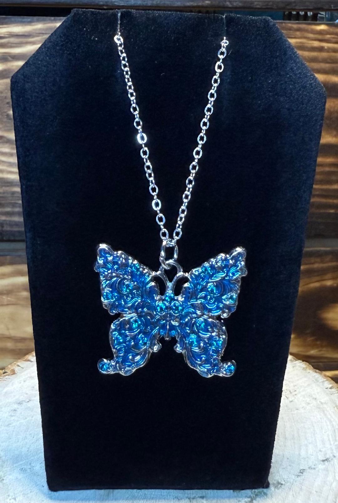 NEW LARGE BLUE RHINESTONE EMBELLISHED BUTTERFLY NECKLACE