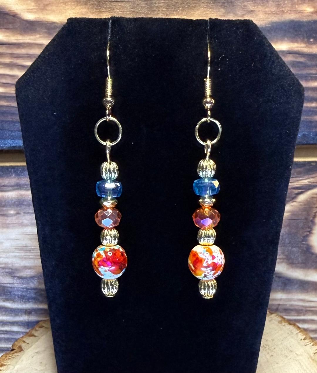 NEW MULTICOLOR ROUND BEAD & BLUE, ORANGE FACETED GLASS BEAD EARRINGS