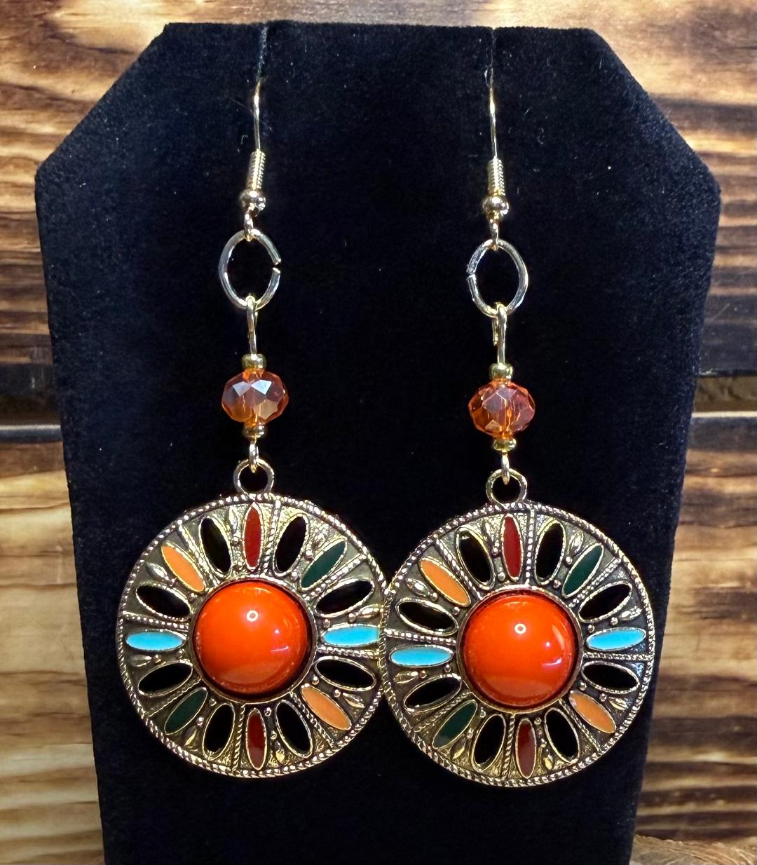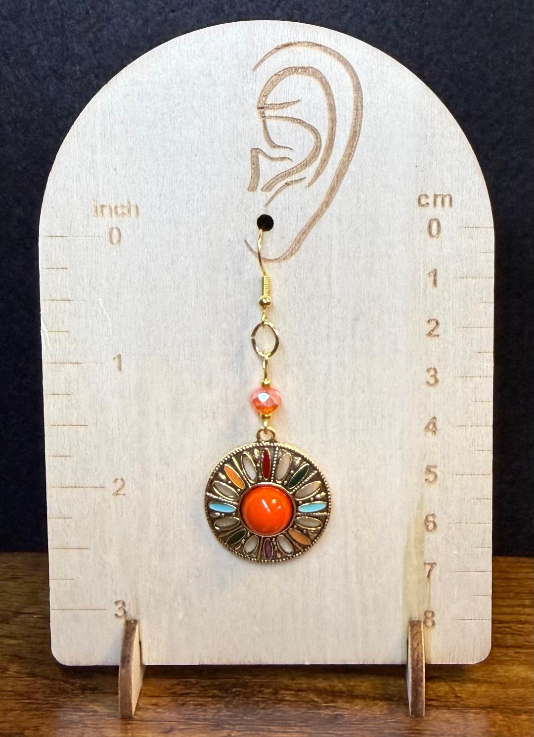 NEW ORANGE CENTER MEDALLION EARRINGS W/ GLASS FACETED BEAD