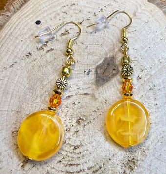![]() | Item #: 1006171 Click on image to see more pictures! Shiny vivid yellow round acrylic charms, topped with small flower beads and glass faceted beads. Measurement Questions? Price: 15.00 |