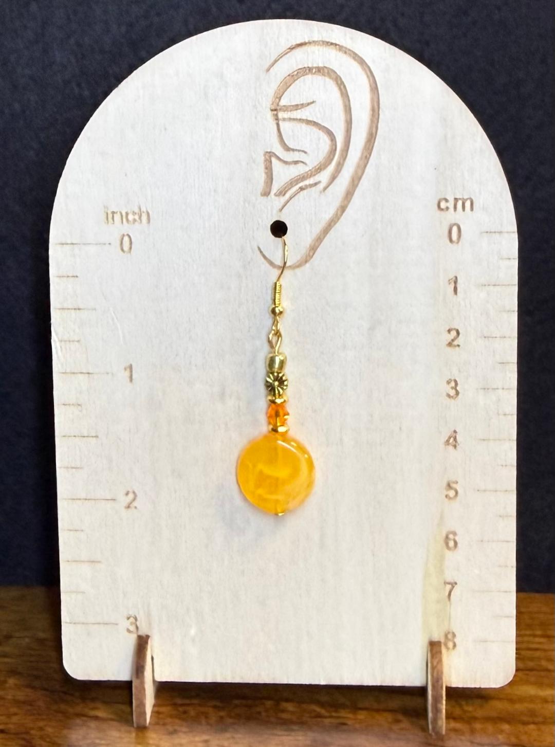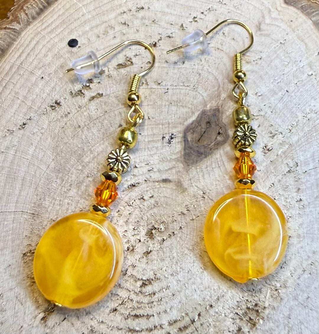 NEW ROUND YELLOW MARBLED CHARM W/ FLOWER & GLASS BEADED EARRINGS