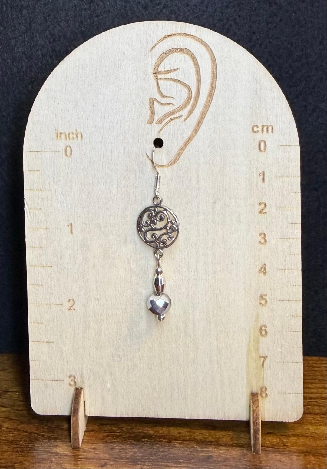 NEW FILIGREE SWIRL CHARM EARRINGS W/ FACETED SILVER GLASS BEAD