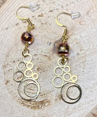 NEW GEOMETRIC ROUND BUBBLE STYLE EARRINGS W/ GLASS METALLIC STRIPED BEADS