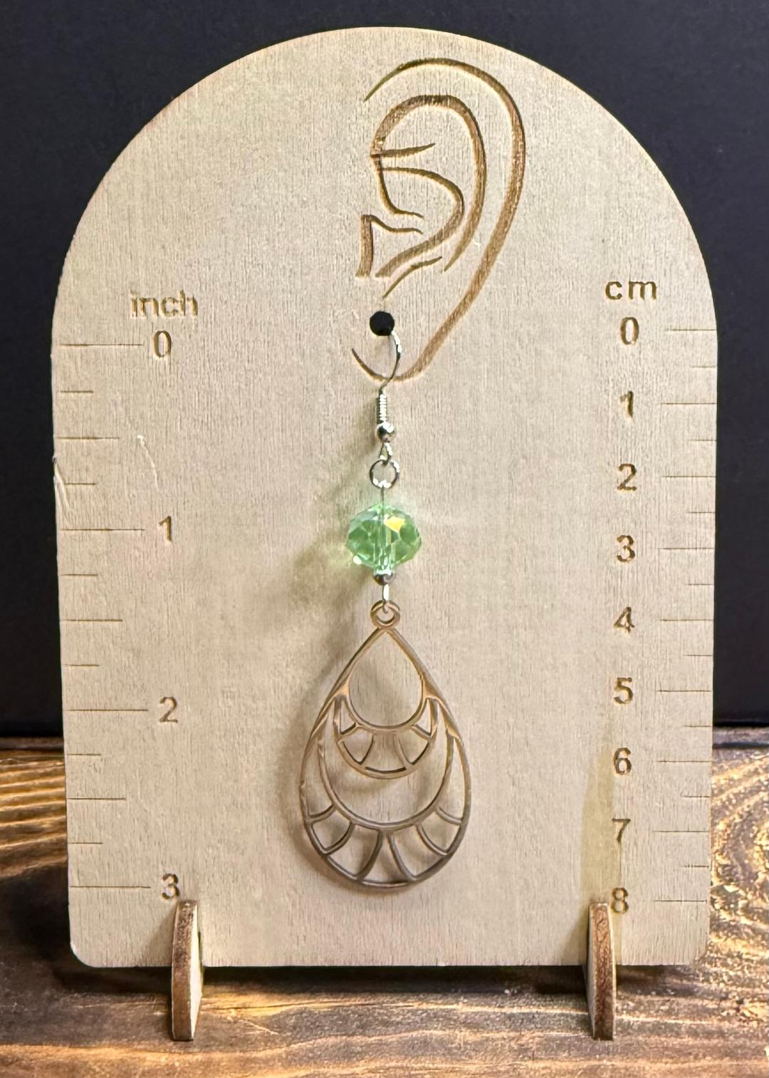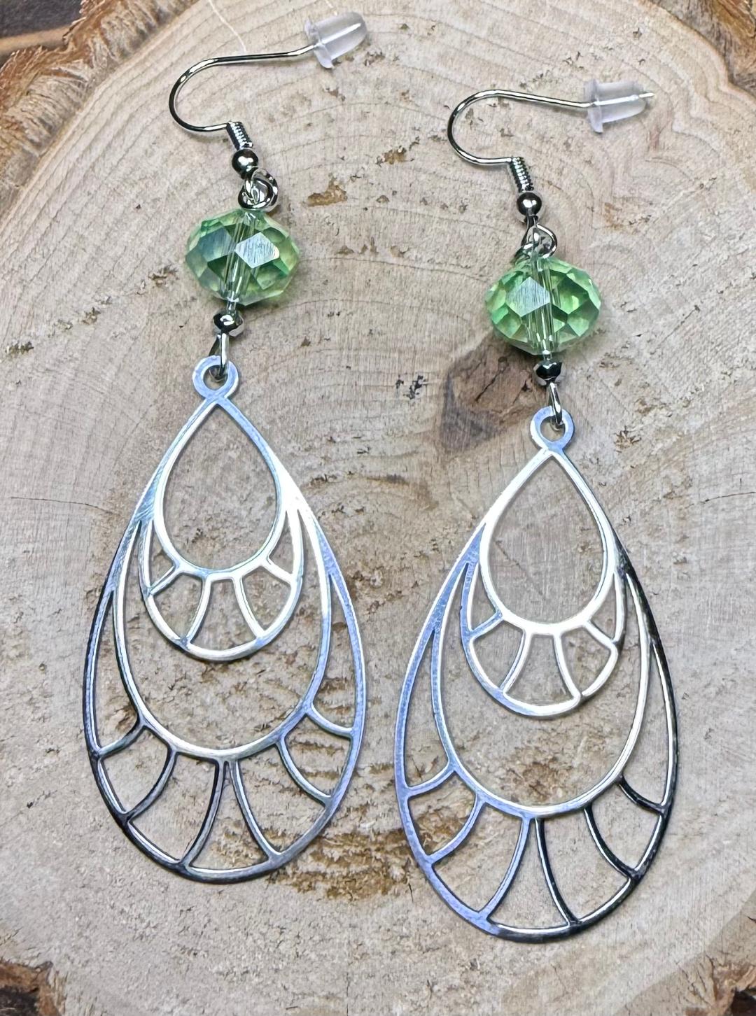 ![]() | Item #: 1006219 Click on image to see more pictures! Beautiful stainless steel large teardrop earrings. They are topped with pastel green glass faceted beads and small silver hematite seed beads. Made with nickel free earring hooks. Measurement Questions? Price: 20.00 |