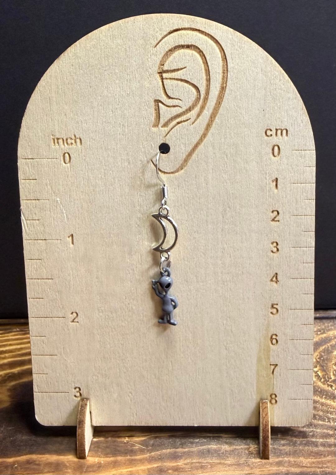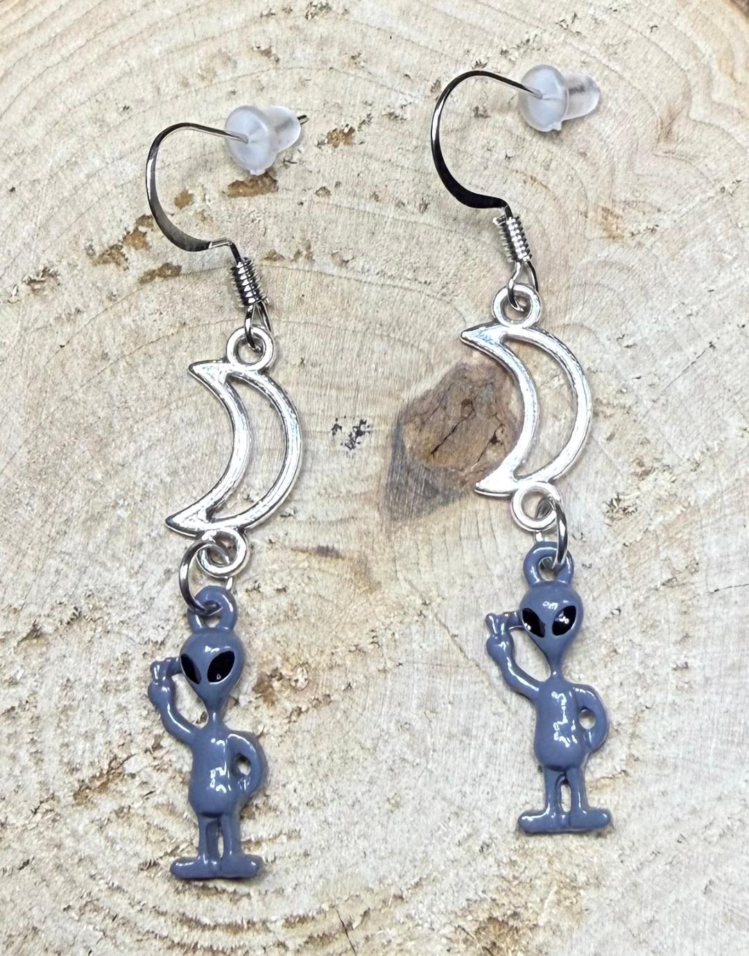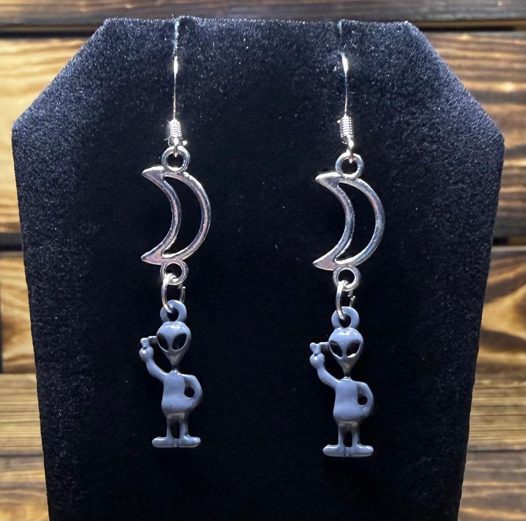 ![]() | Item #: 1006221 Click on image to see more pictures! Made with a mini gray alien and topped with a hollow crescent moon. Made with nickel free earring hooks. Measurement Questions? Price: 14.00 |