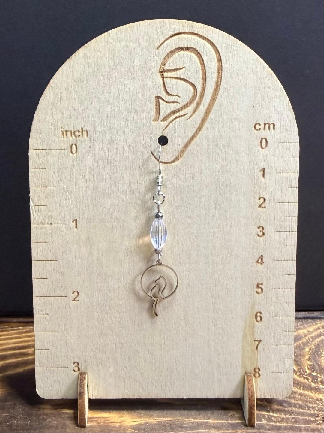 ![]() | Item #: 1006232 Click on image to see more pictures! A cute little cat with a hanging tail made in silver stainless steel. Topped with an elongated iridescent clear glass faceted bead. Made with nickel free earring hooks. Measurement Questions? Price: 16.00 |