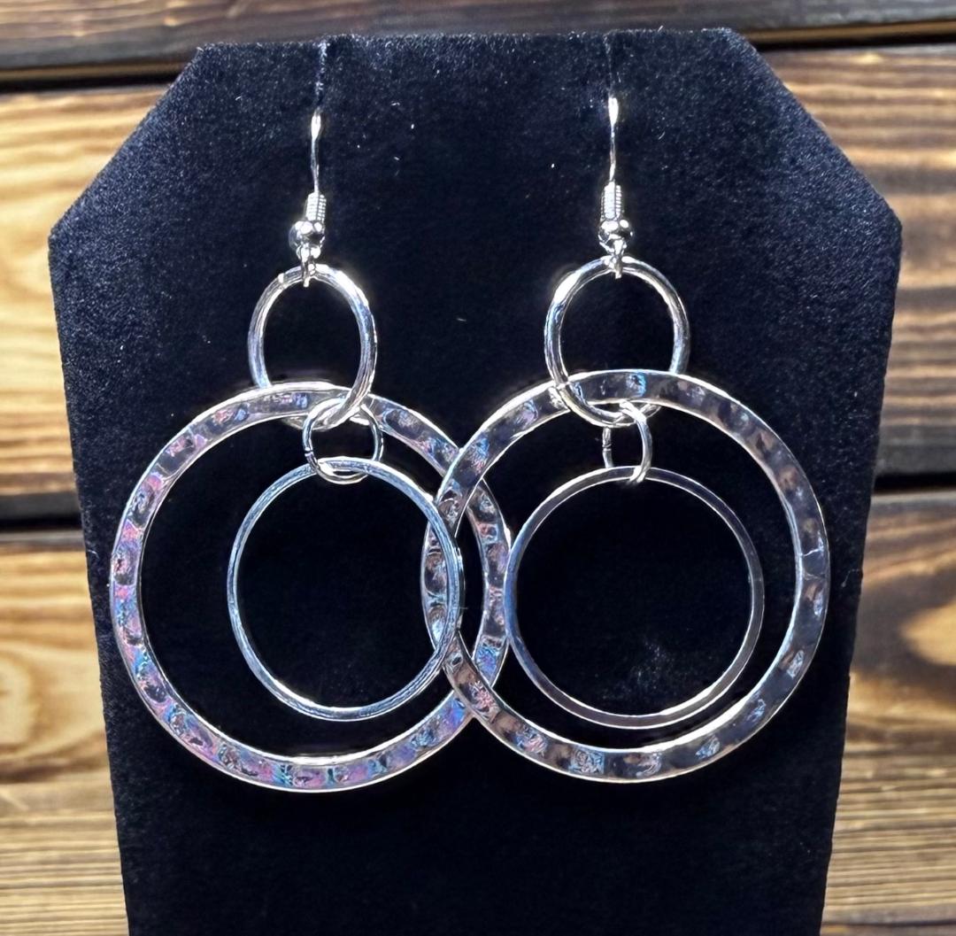 NEW TRIPLE RING SILVER HOOP EARRINGS