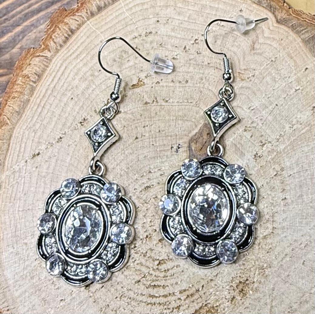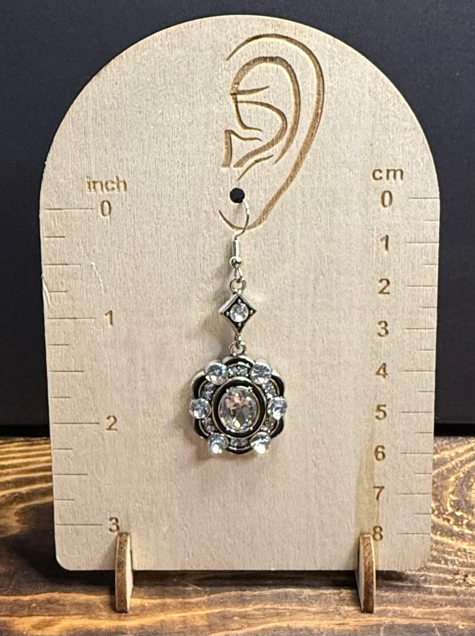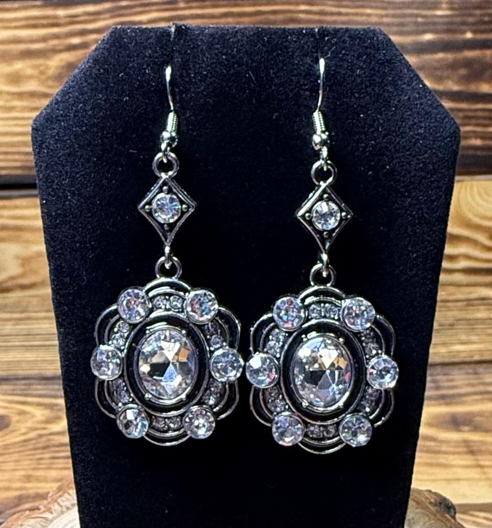 NEW DRAMATIC LARGE RHINESTONE SETTING BLACK, SILVER EARRINGS