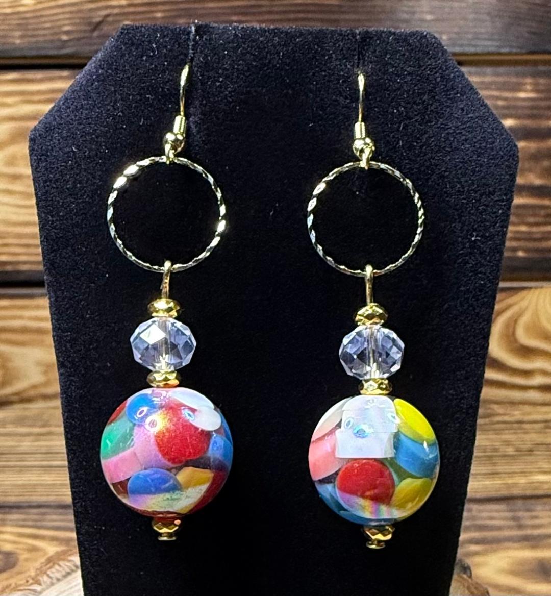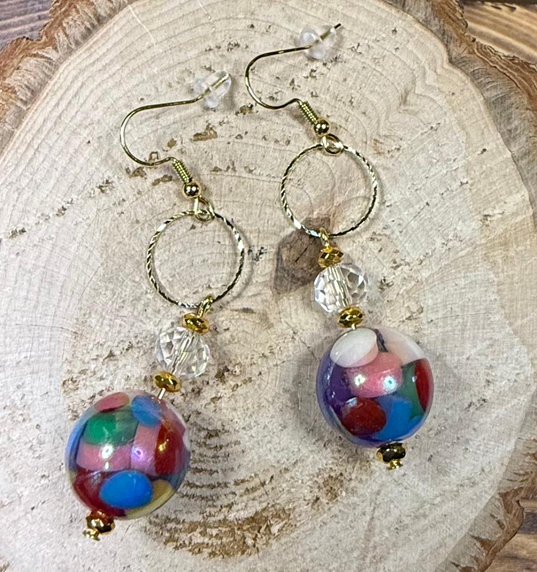 NEW MOD STYLE MULTICOLOR BALL EARRINGS W/ GLASS BEADS