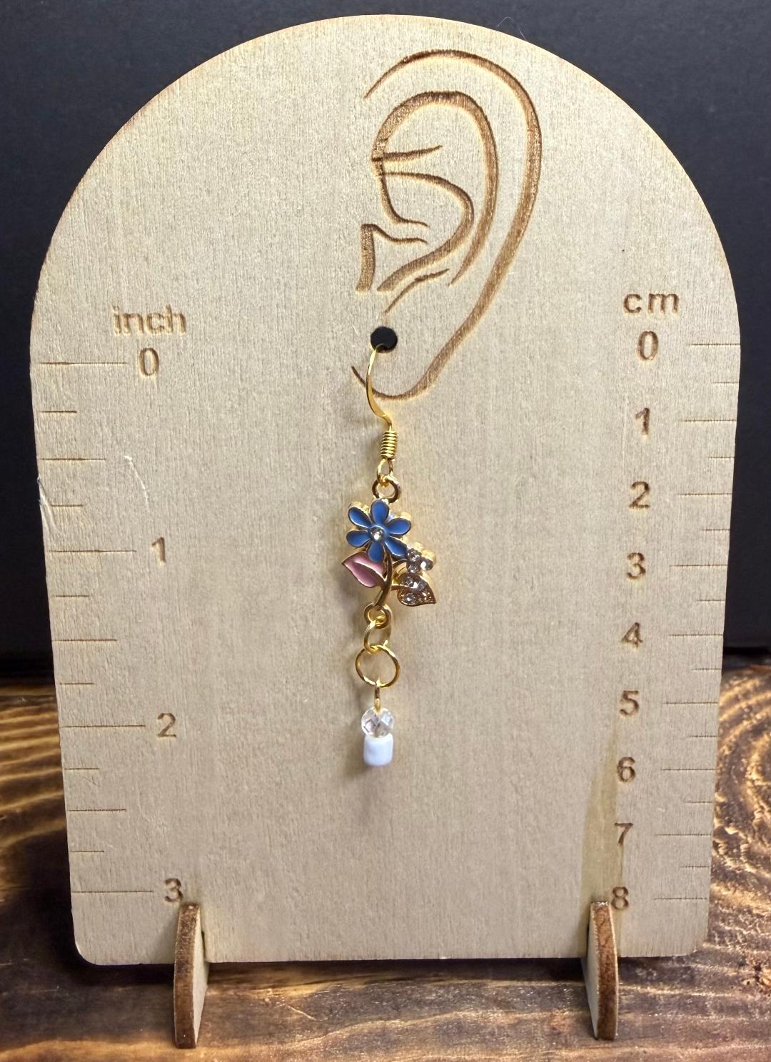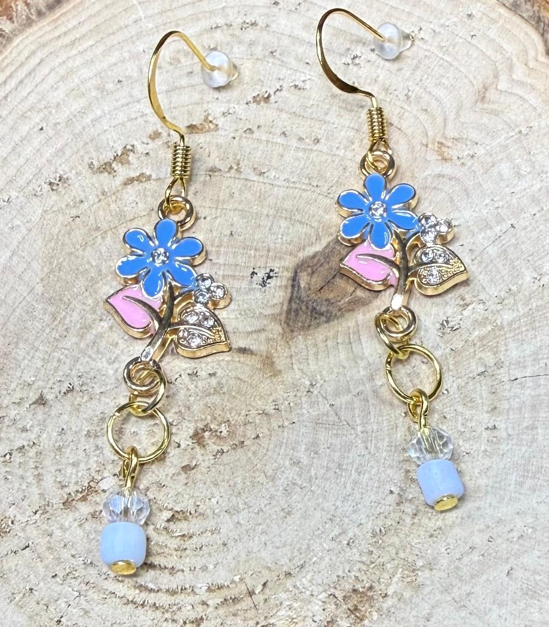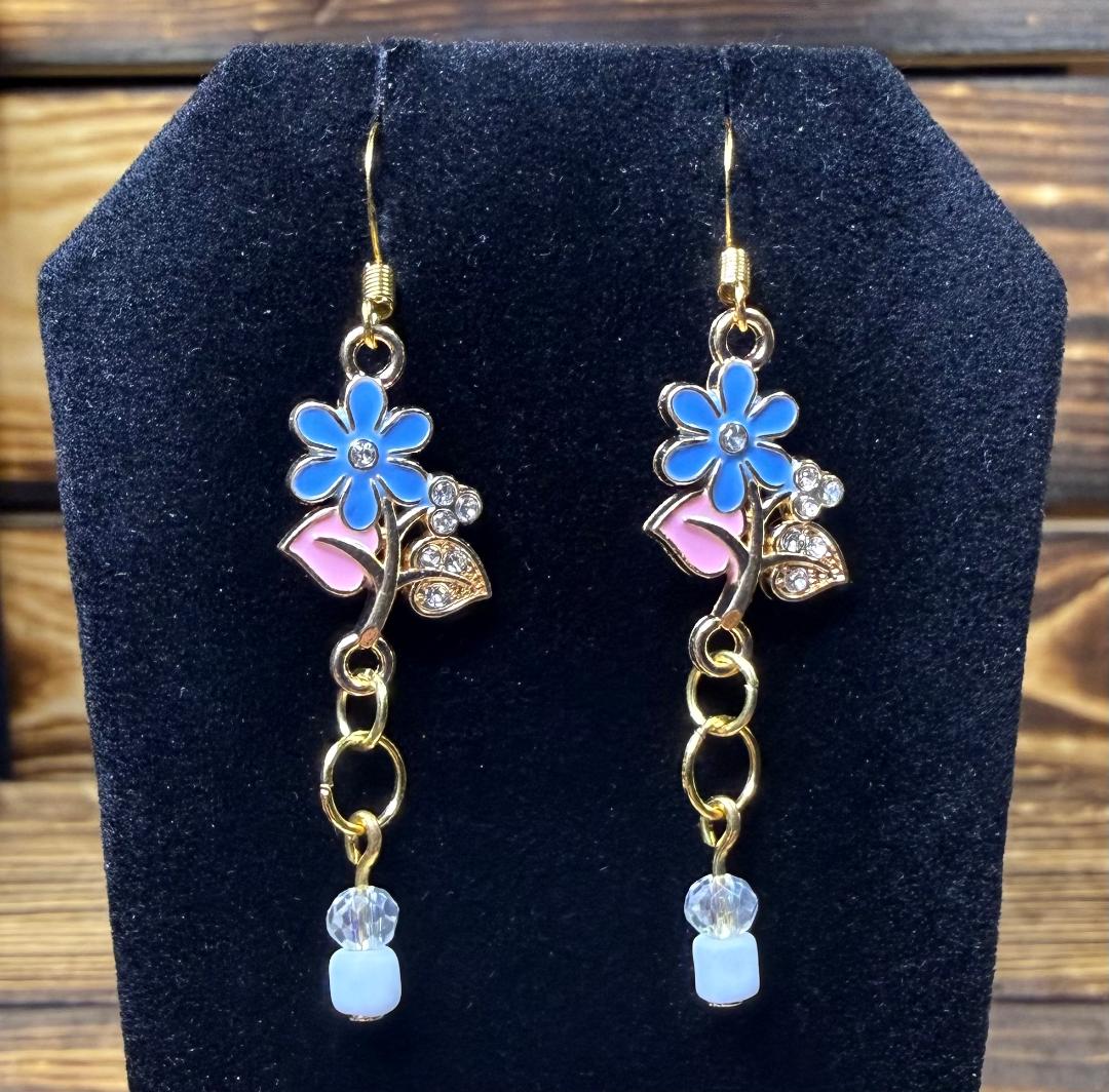 NEW BLUE & PINK FLOWER W/ RHINESTONE CHARM EARRINGS
