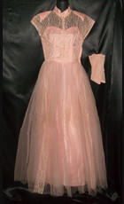 Vintage 50's Candy Pink Crinoline Party Dress w/Wrist Covers 34