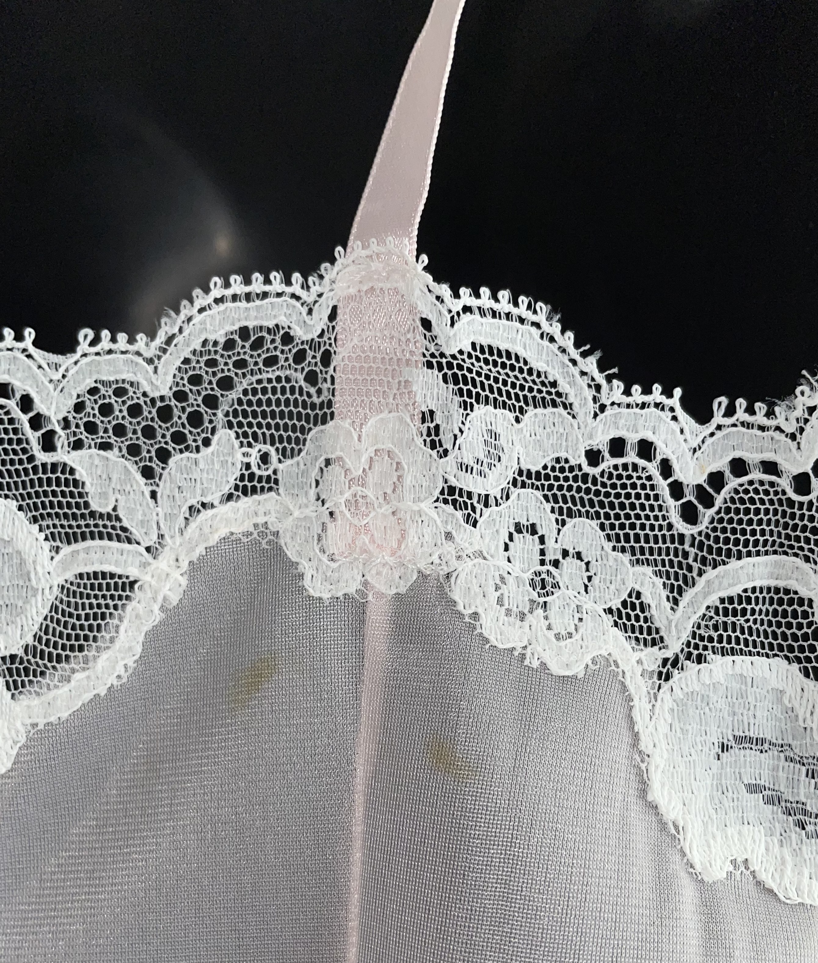 VINTAGE PALEST PINK 1950'S VANITY FAIR SEMI-SHEER NYLON FULL SLIP 32