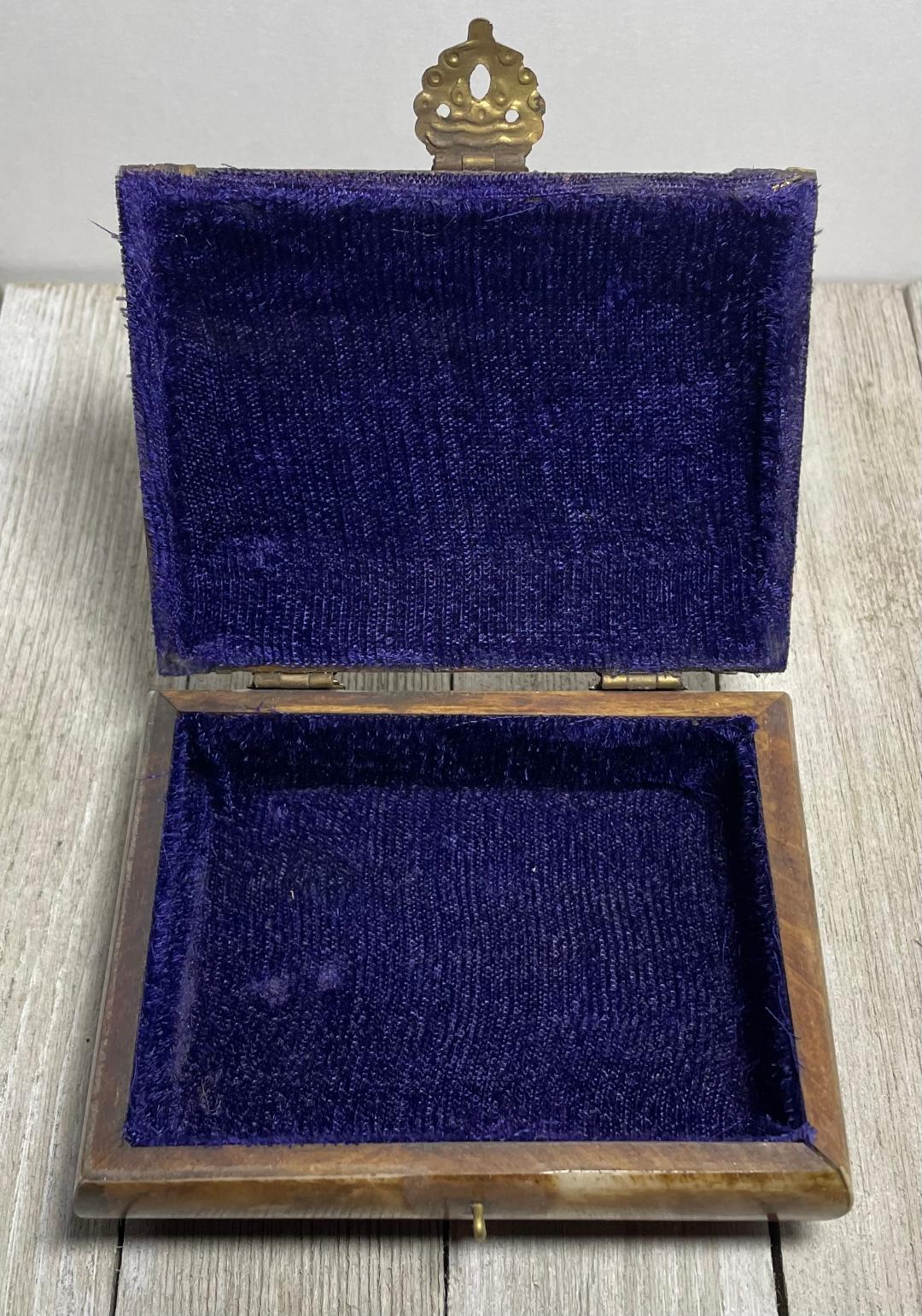 ![]() | Item #: 1005351 Click on image to see more pictures! This is one of those conversation pieces, I believe it's made in India from camel bone. There is a brass closure with carved brass fixtures on the top as well. The inside is lined with a purple velveteen fabric. It opens and closes nicely without problems and it looks to have been well taken care of. Please consider the photos to be a part of the description and measurements. A precious ring or jewelry, vanity box. Quite a collectible! Measurement Questions? Price: 25.00 |