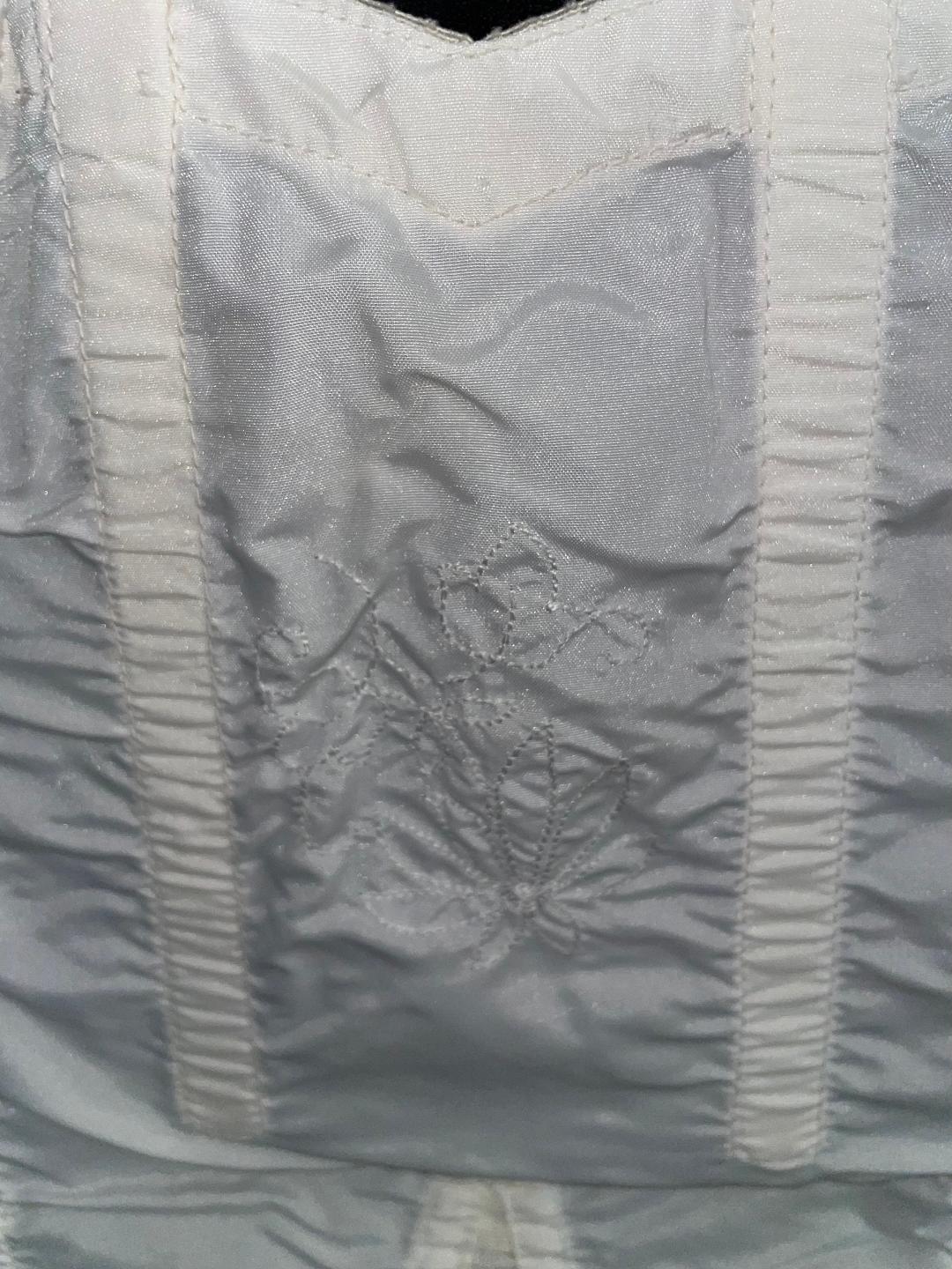 ![]() | Item #: 1005470 Click on image to see more pictures! Here I have a Warners girdle that has a full set of 6 garters, non-removable. There is boning (stays) on the tummy and upper back. Some lovely embroidery on the tummy as well. Metal zipper backed with hook & eye closures. Lovely condition, waist true to size, please be mindful of the measurements. Waist is 31-32", hips 33-35", opening 32-36", length is 14". Measurement Questions? Price: 38.00 |