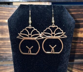 NEW GOLD TONE LOTUS FLOWER POTTED PLANT & BODY CHARM DANGLE DROP EARRINGS