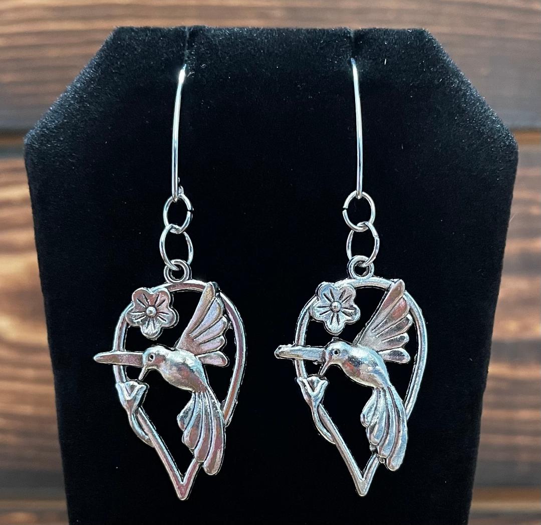 NEW HUMMINGBIRD SILVER TONE EARRINGS W/ FRENCH V-HOOKS