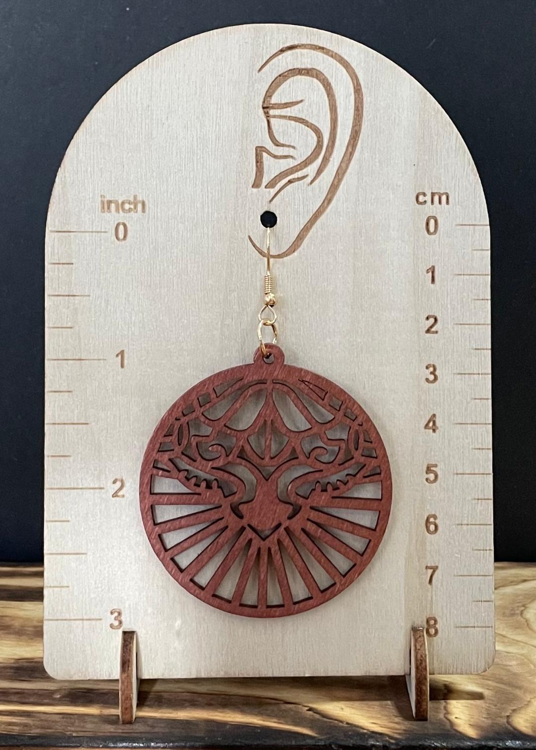 NEW LARGE AZTEC FACE WOODEN MANDALA EARRINGS
