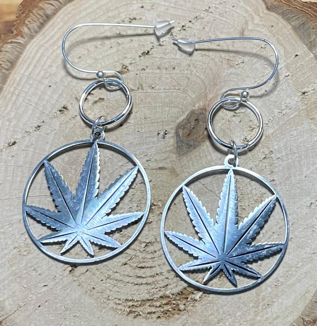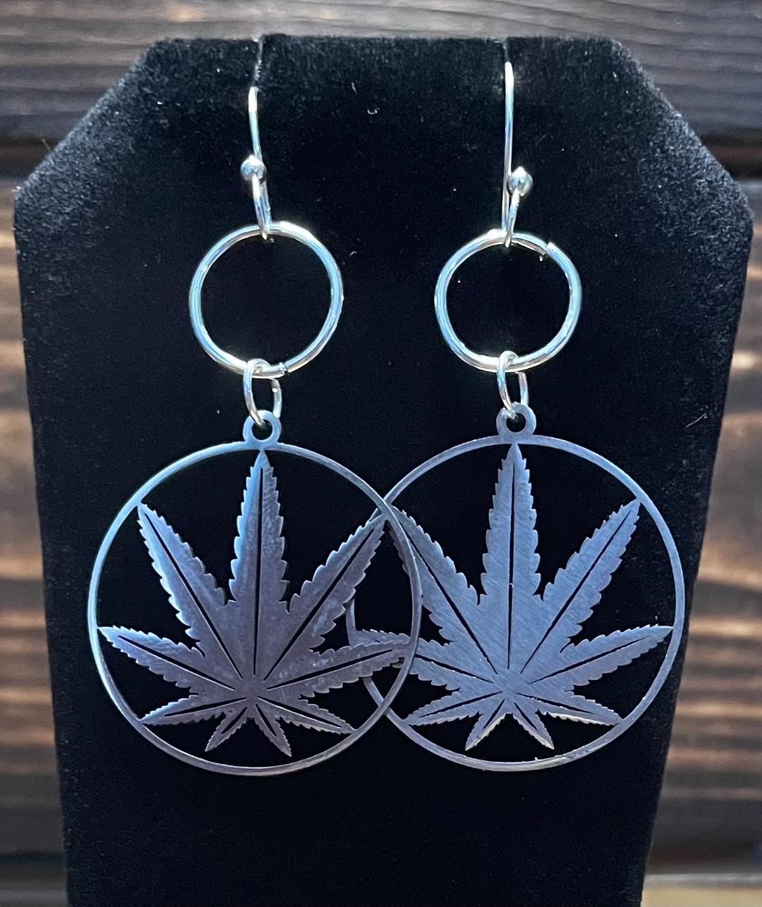 NEW STAINLESS STEEL HOLLOW SILVER LEAF CHARM EARRINGS