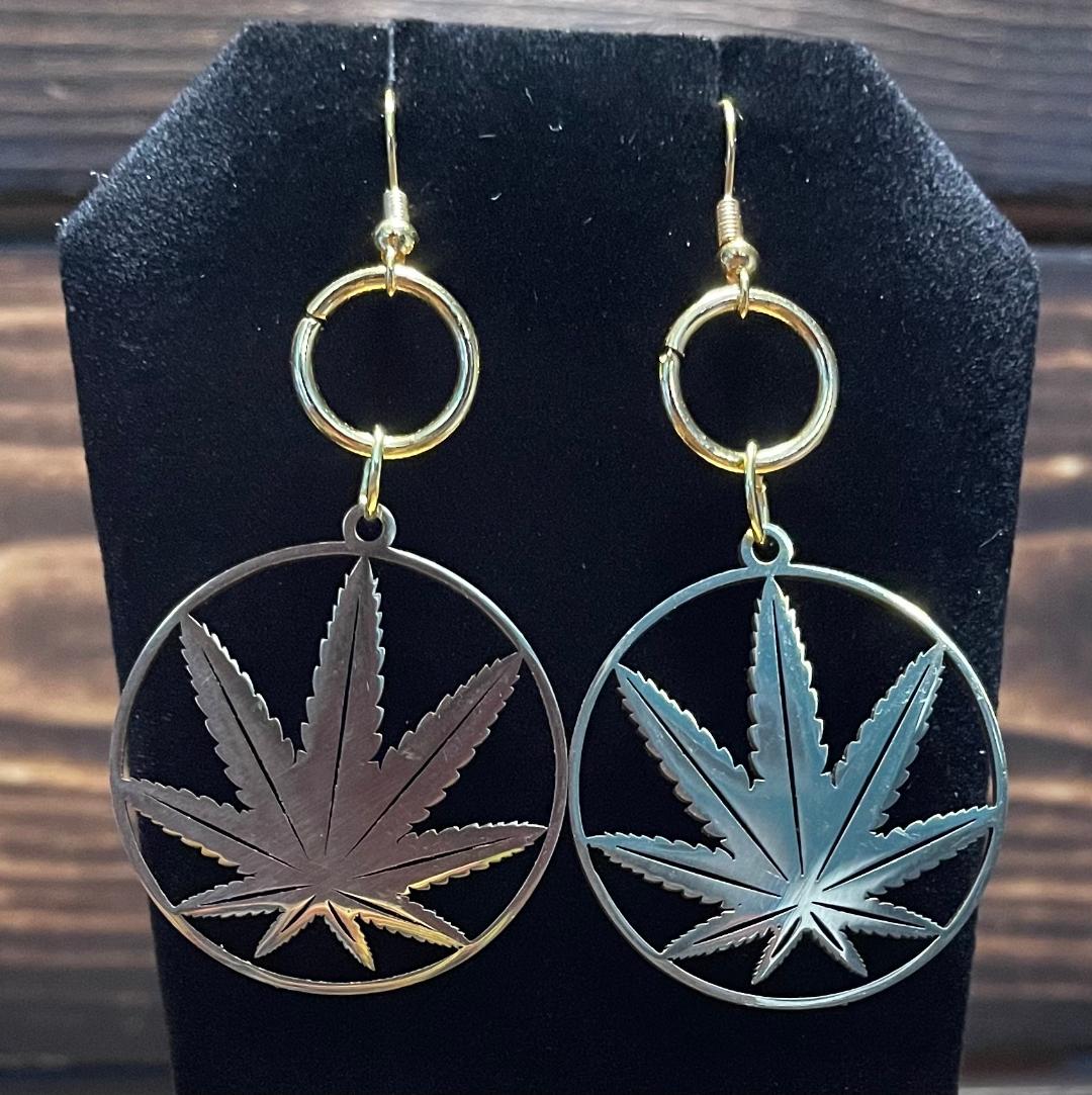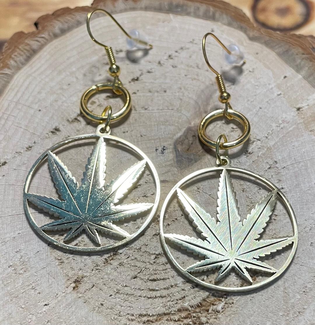 NEW STAINLESS STEEL HOLLOW GOLD LEAF CHARM EARRINGS