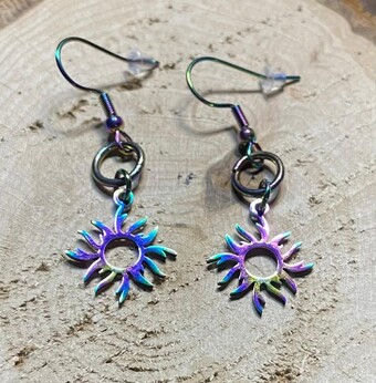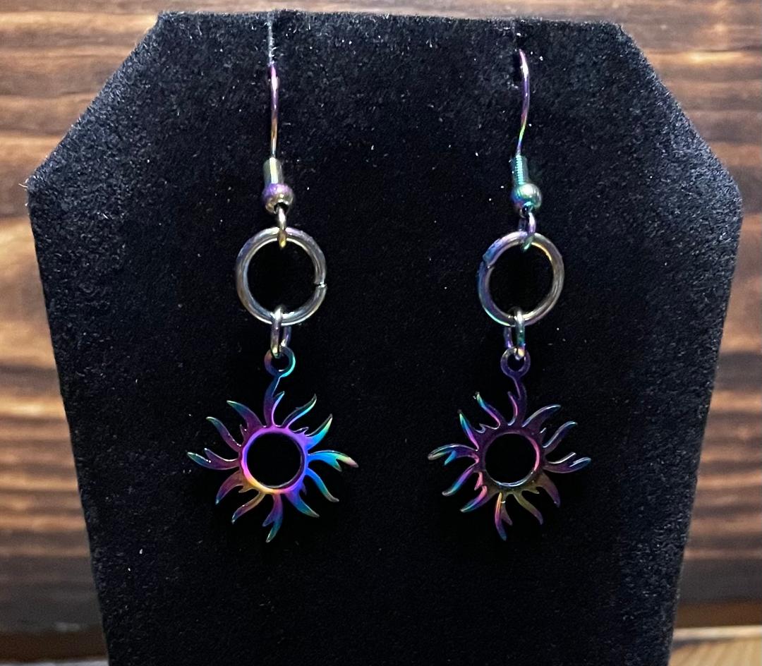 NEW STAINLESS STEEL IRIDESCENT SUNBURST EARRINGS