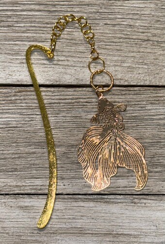 NEW GOLD TONE FILIGREE KOI FISH METAL CHARM BOOKMARK