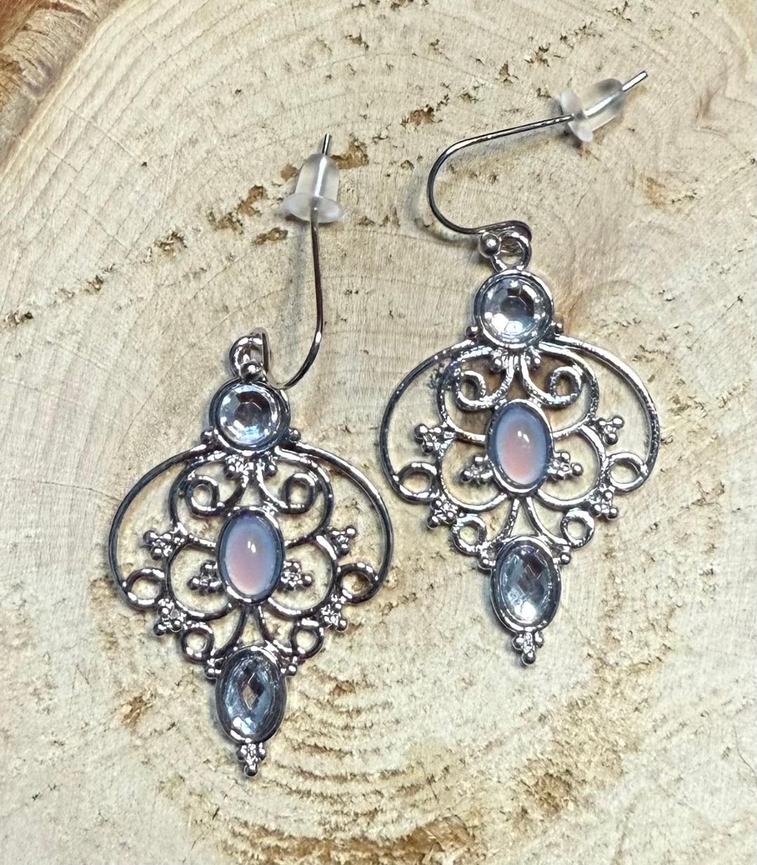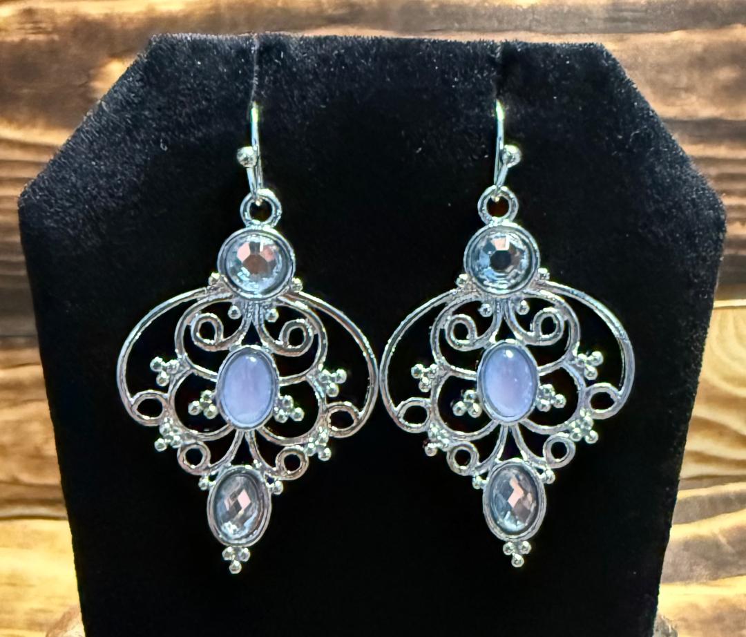NEW FRENCH STYLE FANCY SILVER EARRINGS W/ GEMS