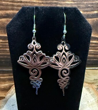 ![]() | Item #: 1005927 Click on image to see more pictures! A pair of bold and dramatic stainless steel lotus flower charm earrings. Made with nickel free earring hooks. Measurement Questions? Price: 18.00 |