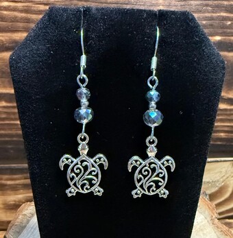 ![]() | Item #: 1005938 Click on image to see more pictures! A cute metal alloy filigree turtle charm, topped with plated glass faceted beads. Made with nickel free earring hooks. Measurement Questions? Price: 14.00 |