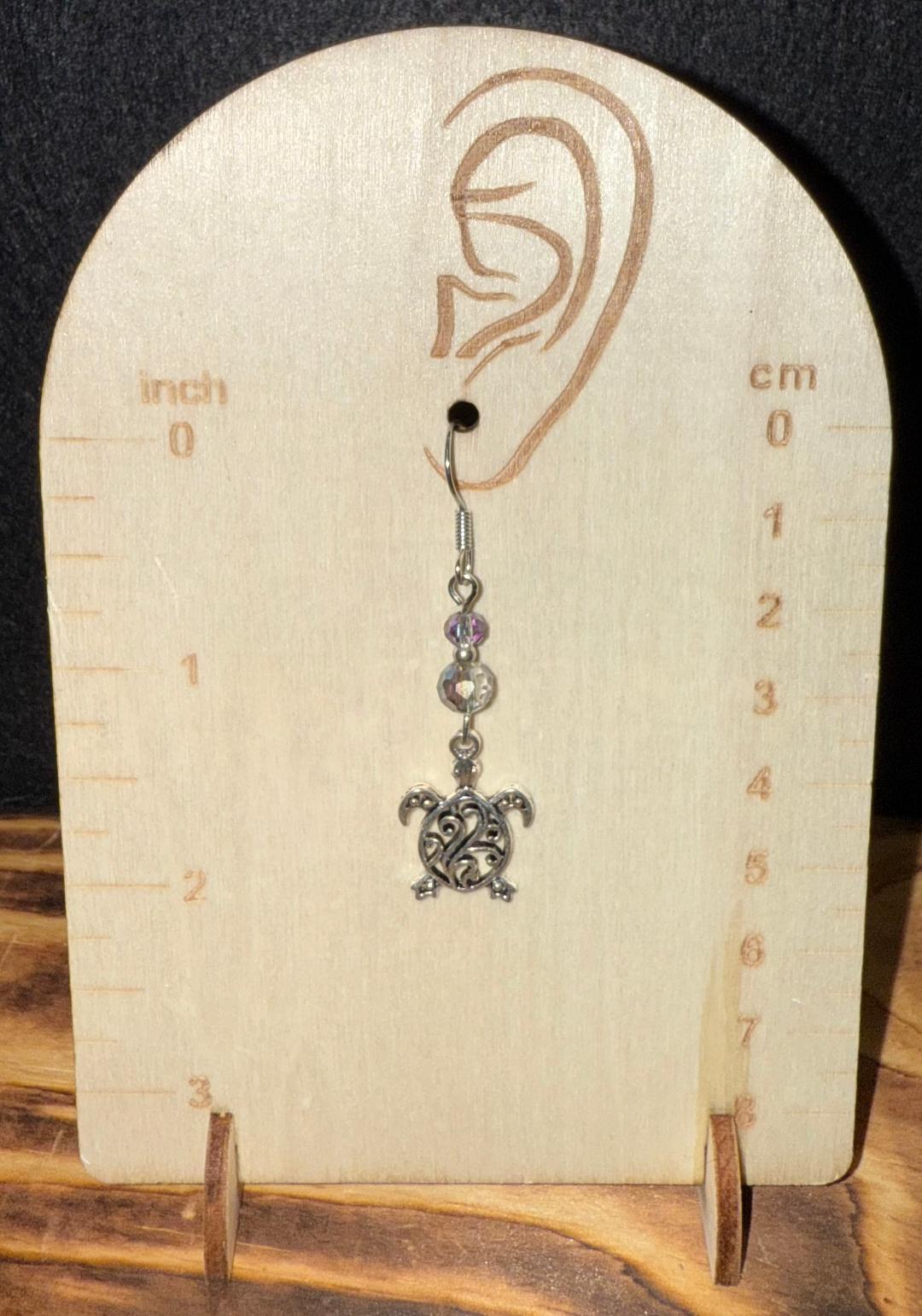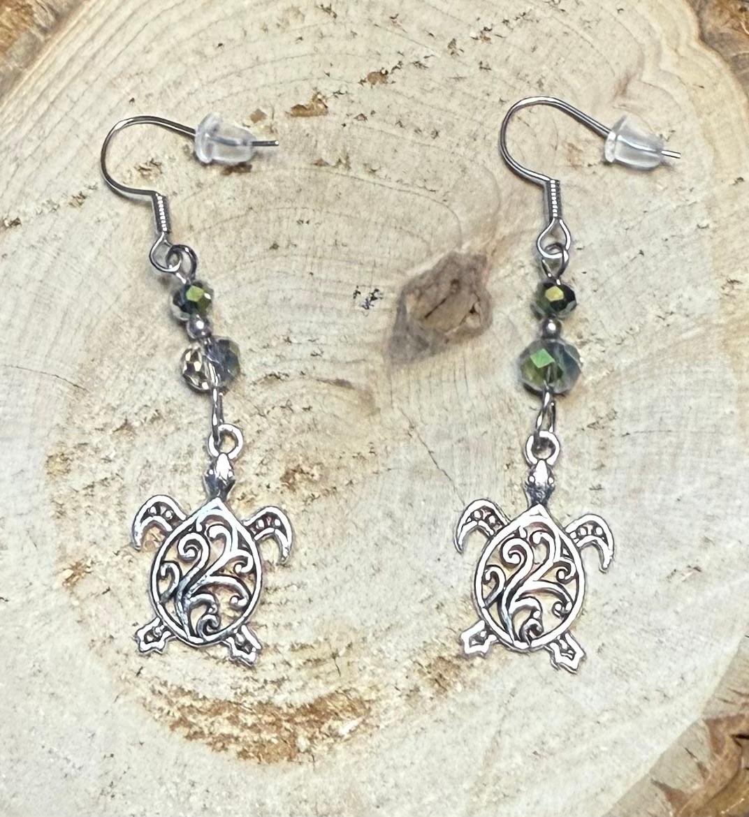 NEW FILIGREE TURTLE CHARM EARRINGS W/ FACETED GLASS BEADS