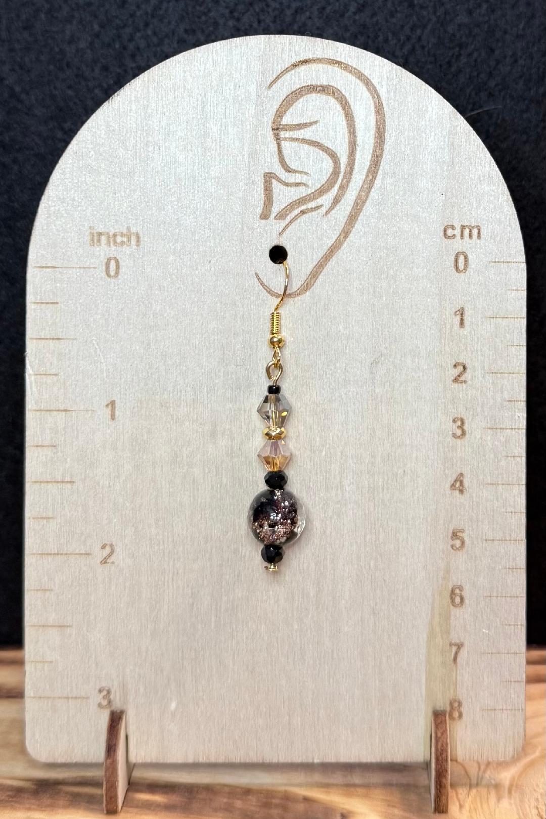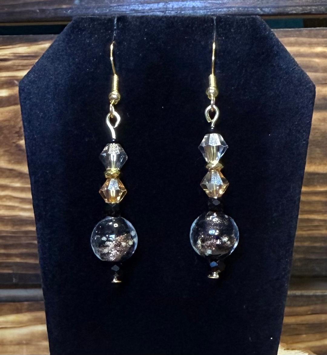 NEW ROUND BLACK & SPARKLING GOLD GLASS BEAD EARRINGS W/ FACETED BEADS
