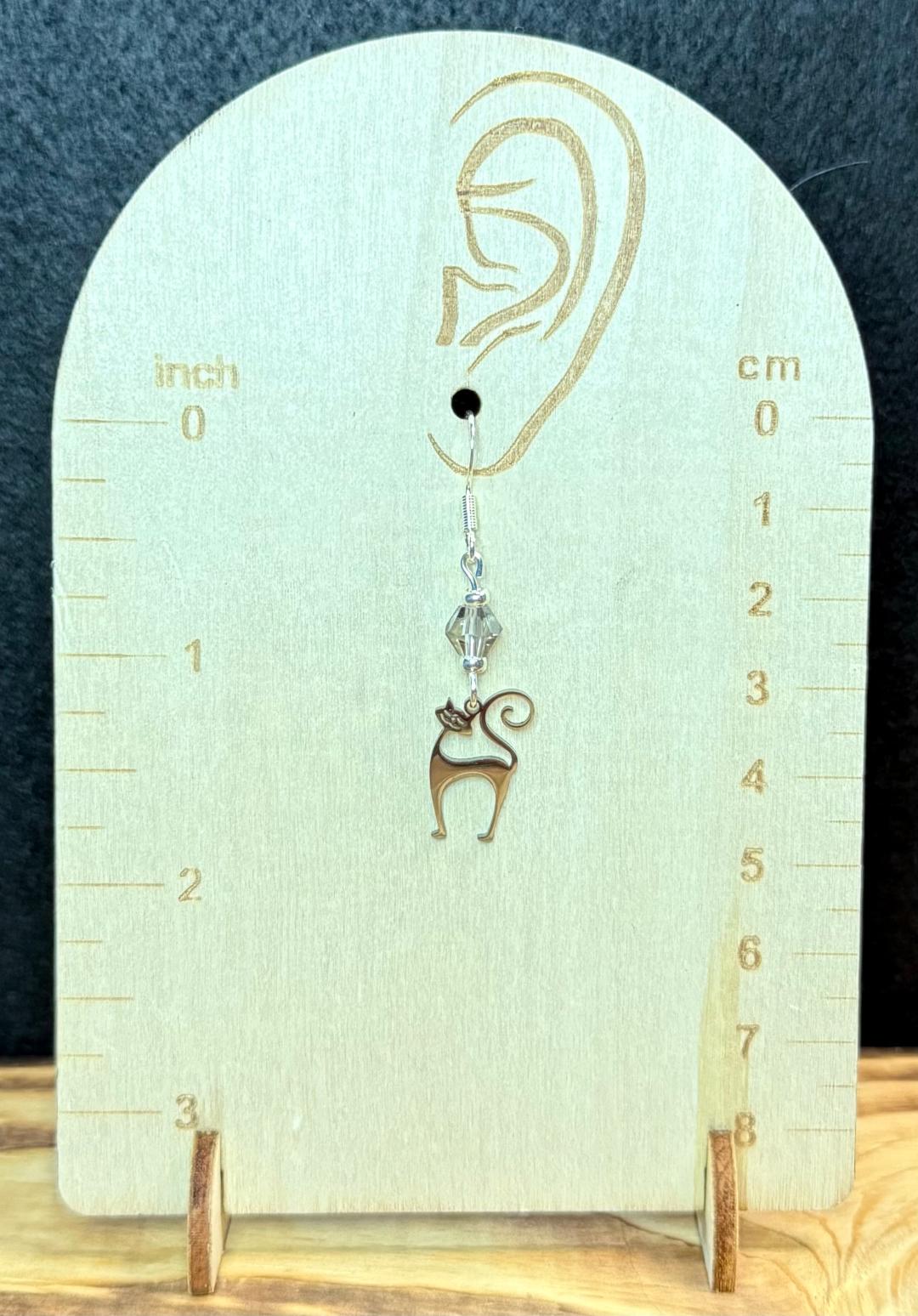NEW SILVER STAINLESS STEEL HAPPY ATOMIC CAT EARRINGS W/ GLASS BEAD