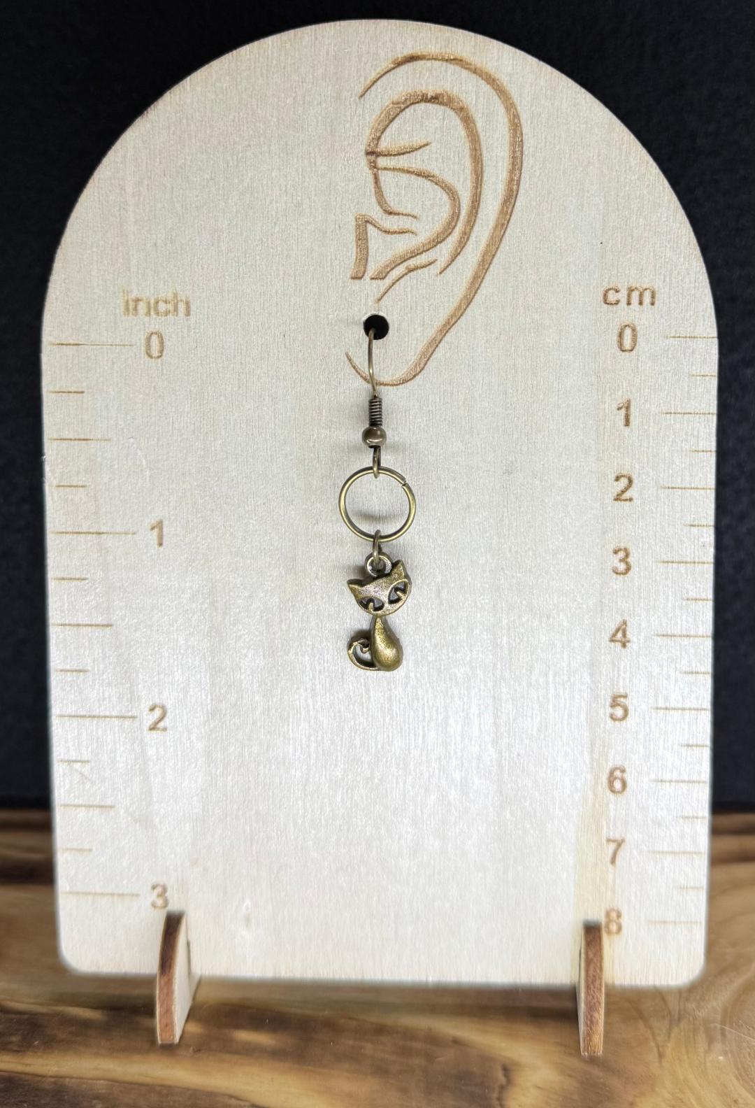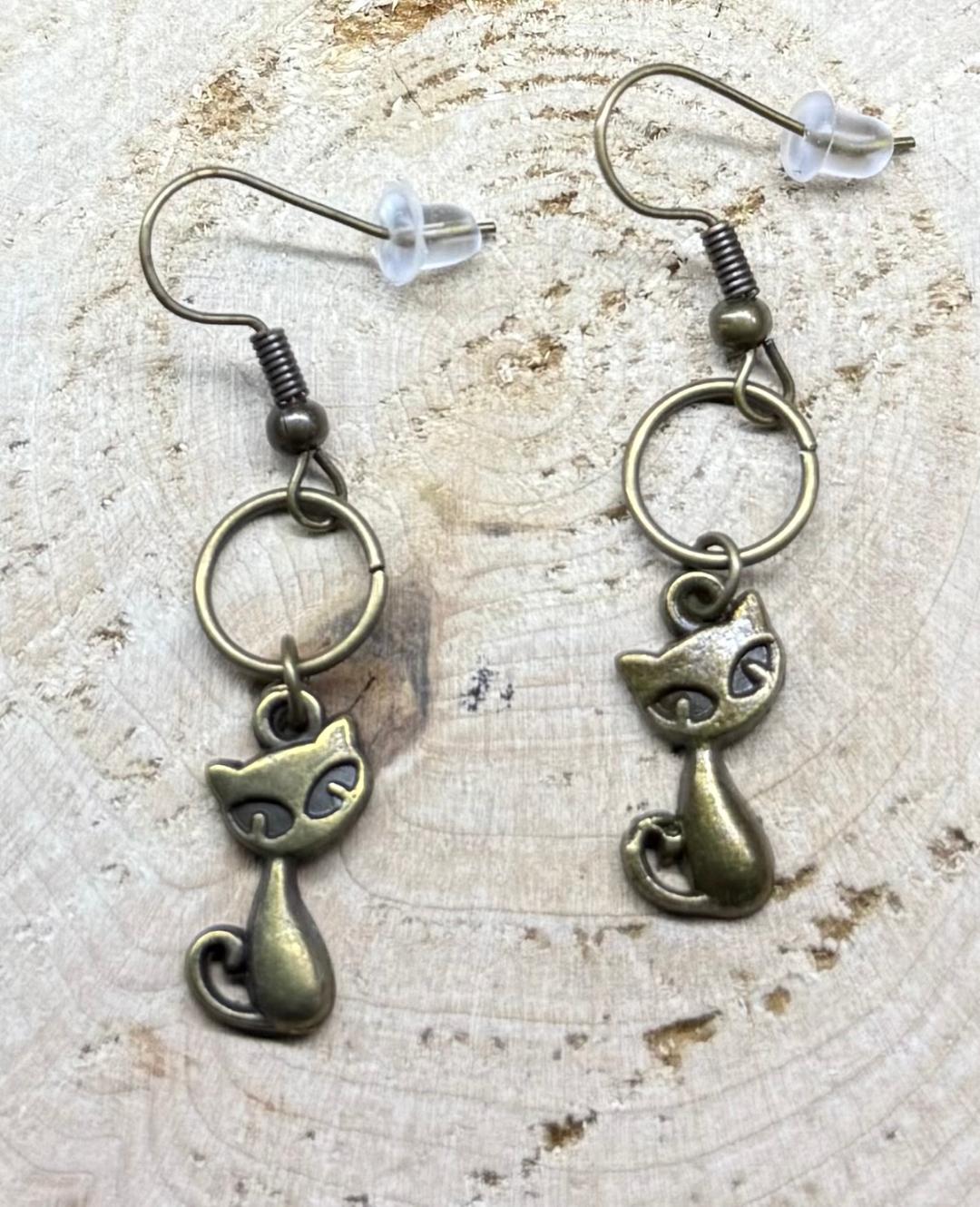 NEW BRONZE TONE RETRO ATOMIC CAT EARRINGS