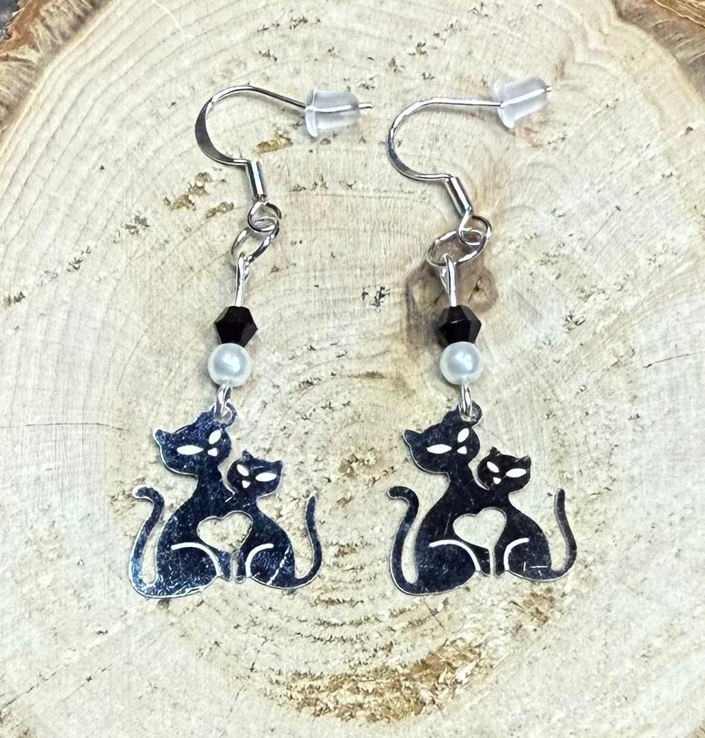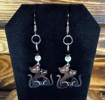 ![]() | Item #: 1006154 Click on image to see more pictures! A light and super thin stainless steel cat and kitten charm, topped with a faux pearl and faceted black glass bead. Made with nickel free earring hooks. Measurement Questions? Price: 16.00 |