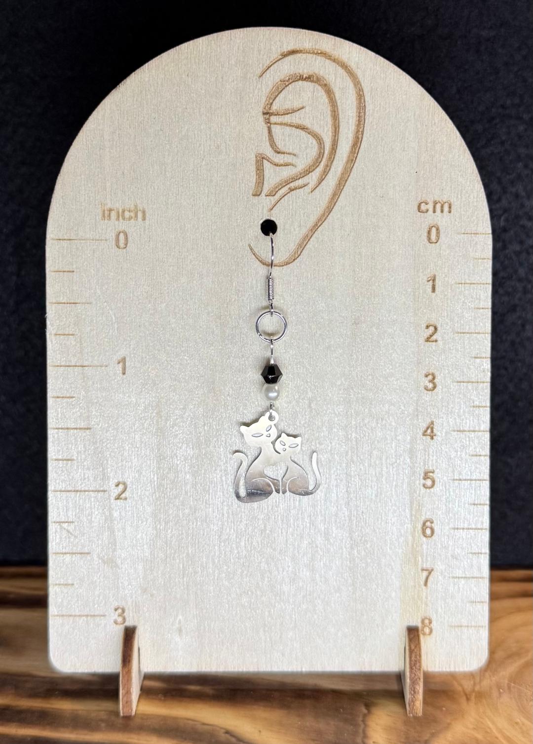 NEW THIN STAINLESS STEEL CAT & KTTEN EARRINGS W/ BEADS