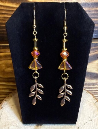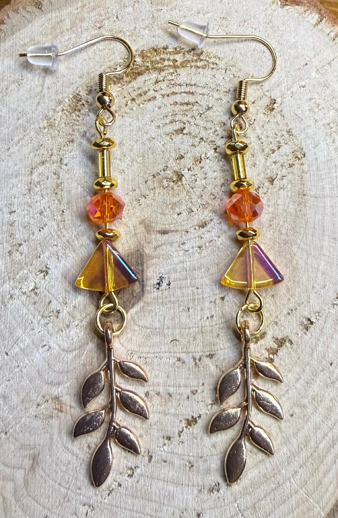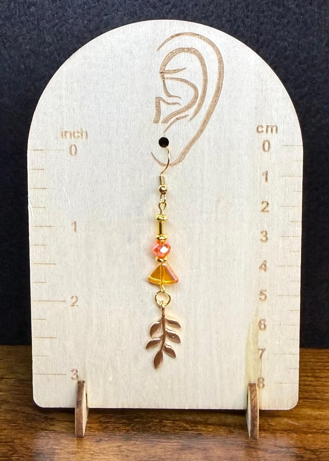 NEW GOLD LEAF W/ ORANGE & AMBER BEAD EARRINGS