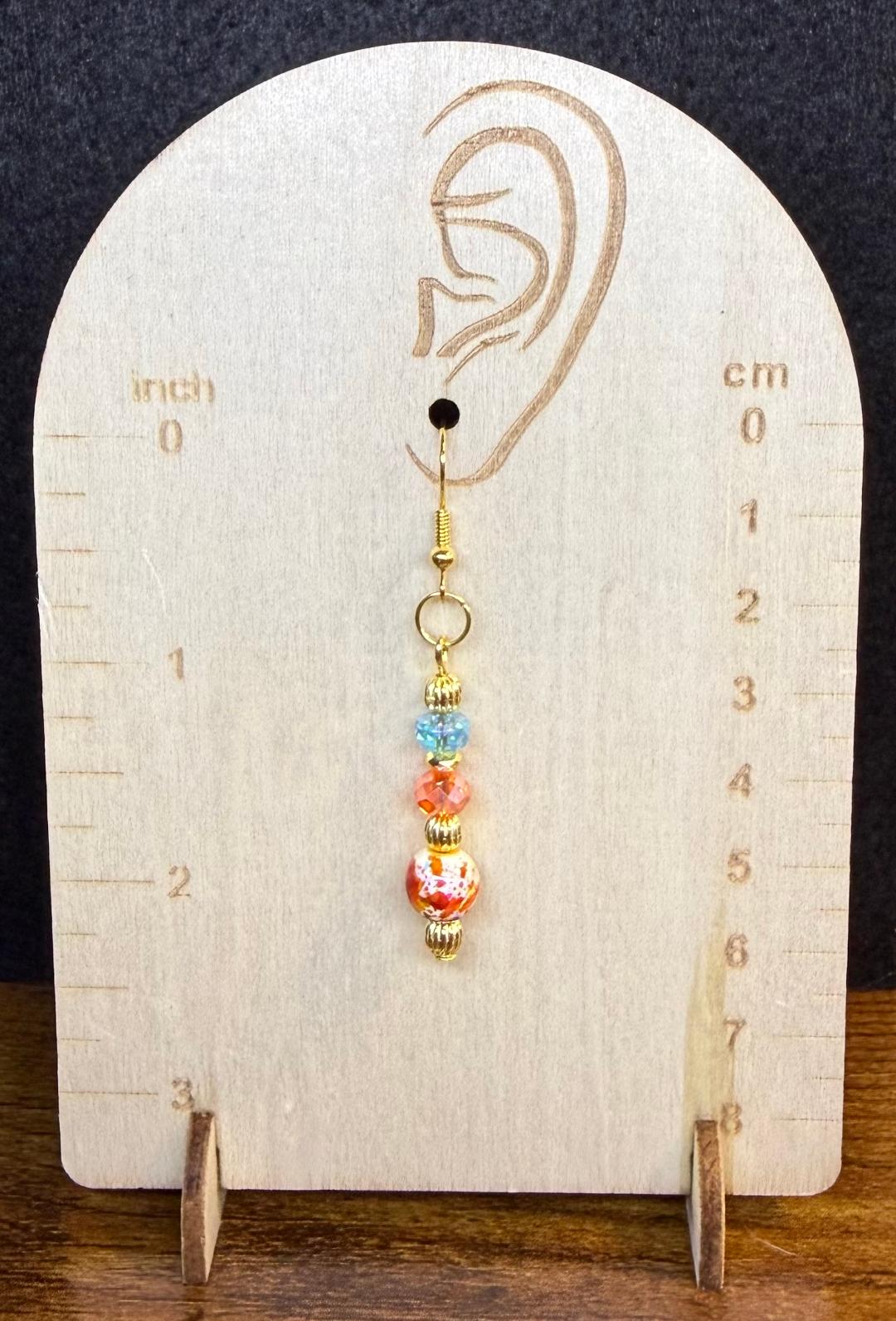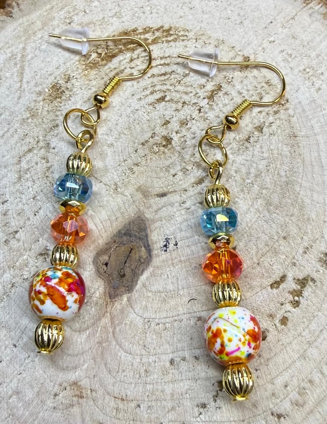 NEW MULTICOLOR ROUND BEAD & BLUE, ORANGE FACETED GLASS BEAD EARRINGS