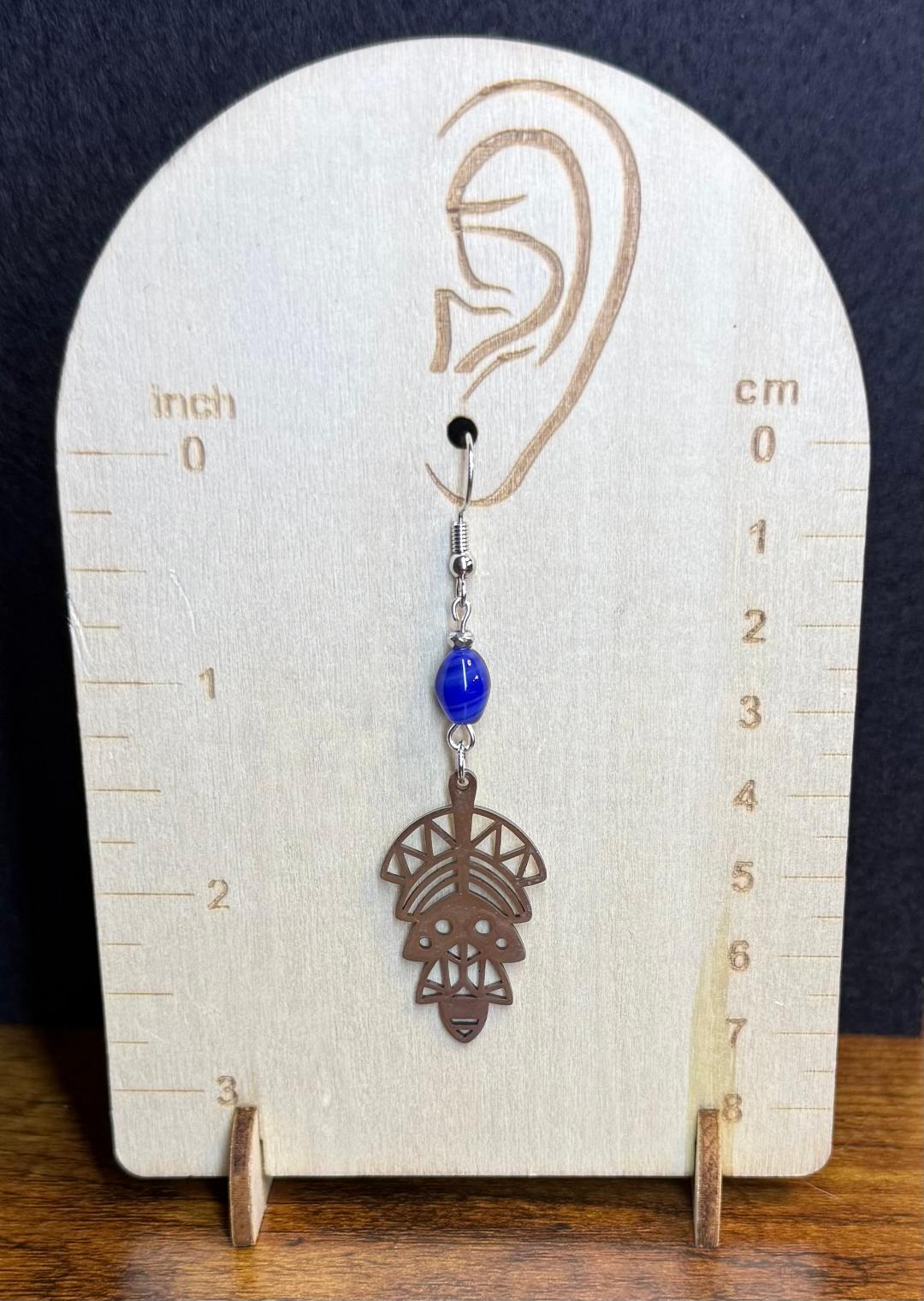 ![]() | Item #: 1006161 Click on image to see more pictures! An Aztec or Southwestern style symbol shape in stainless steel, topped with a royal blue marbled oval shaped bead. Made with nickel free earring hooks. Measurement Questions? Price: 18.00 |