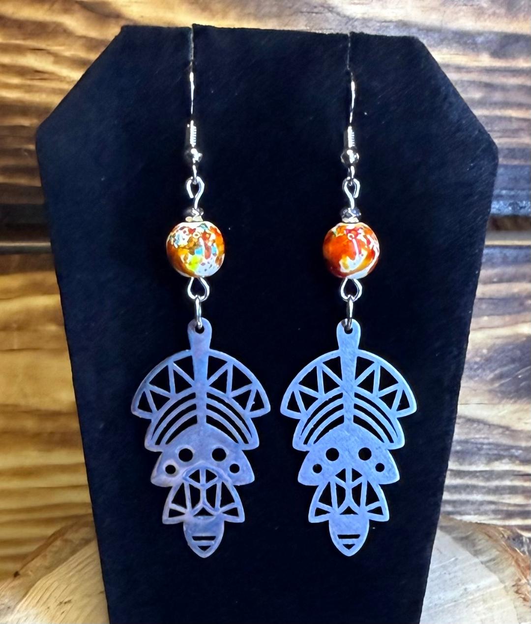 NEW SOUTHWESTERN STYLE STAINLESS STEEL SYMBOL EARRINGS W/ MULTICOLORED BEAD