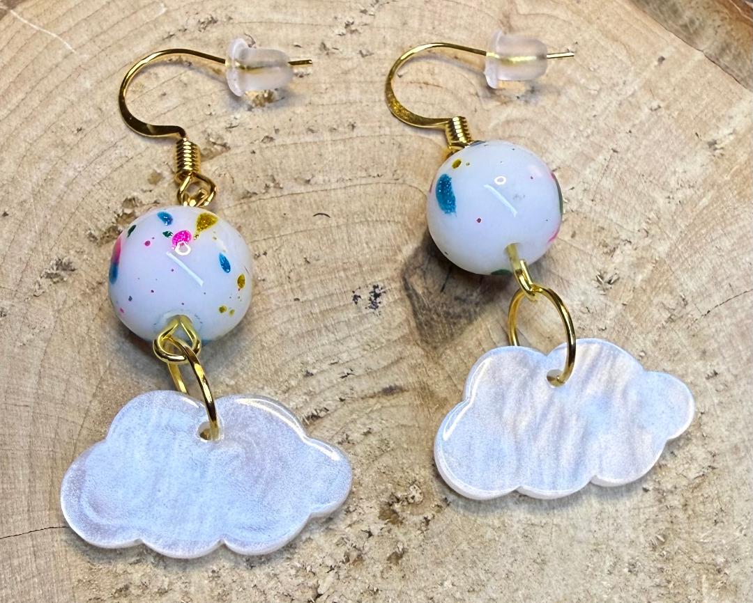 NEW CLOUDS & CONFETTI DROP GLASS BEAD EARRINGS