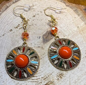 NEW ORANGE CENTER MEDALLION EARRINGS W/ GLASS FACETED BEAD