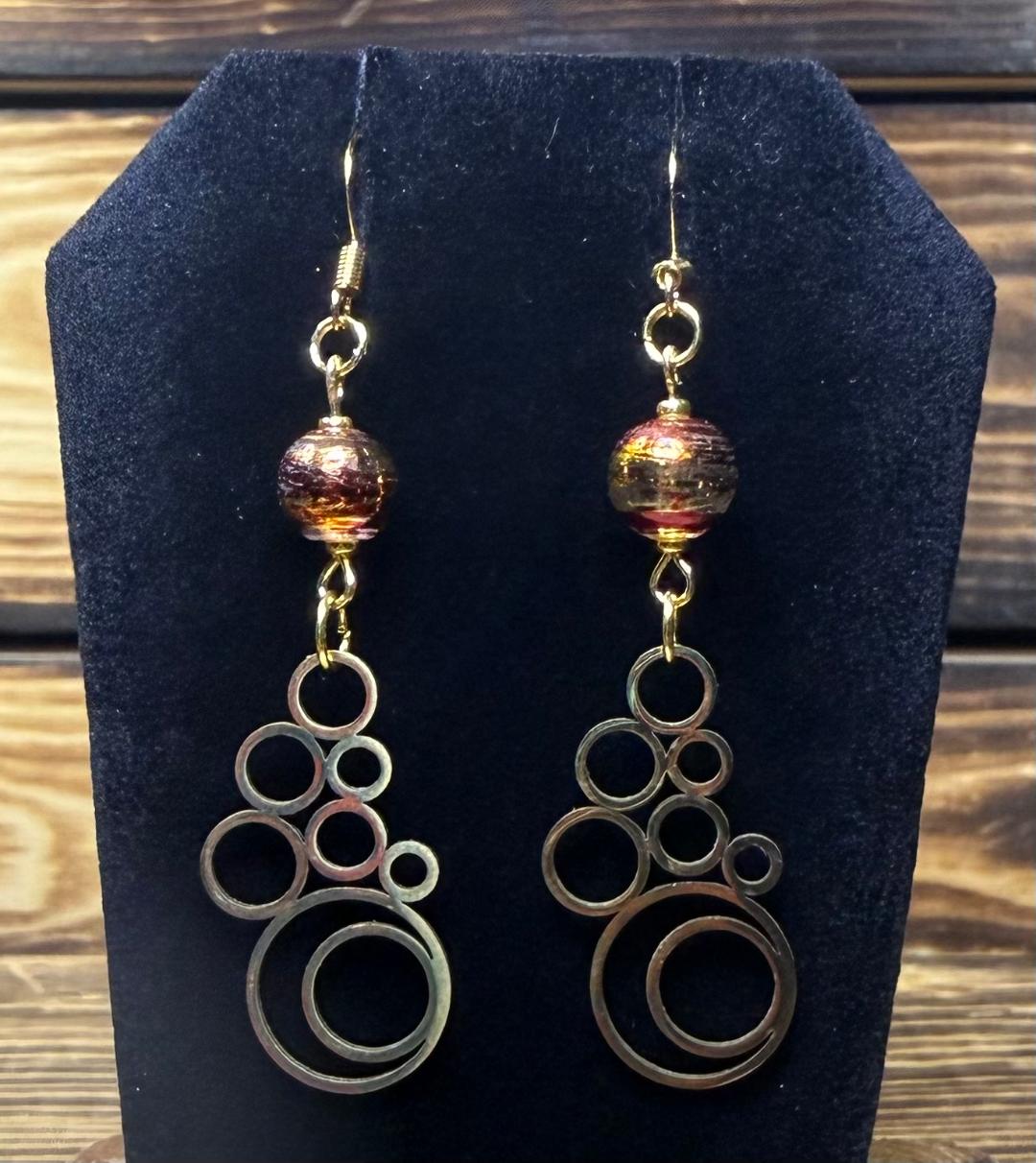 NEW GEOMETRIC ROUND BUBBLE STYLE EARRINGS W/ GLASS METALLIC STRIPED BEADS
