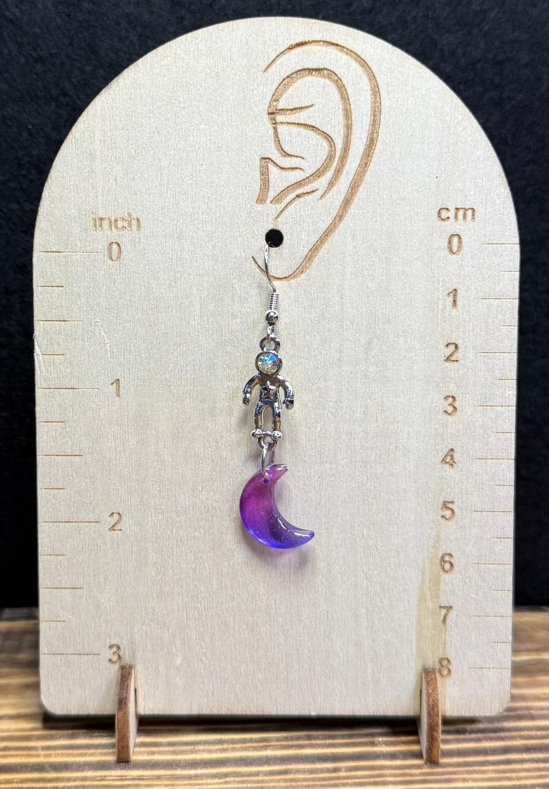 NEW MAN ON THE MOON ASTRONAUT EARRINGS W/ PURPLE MOON