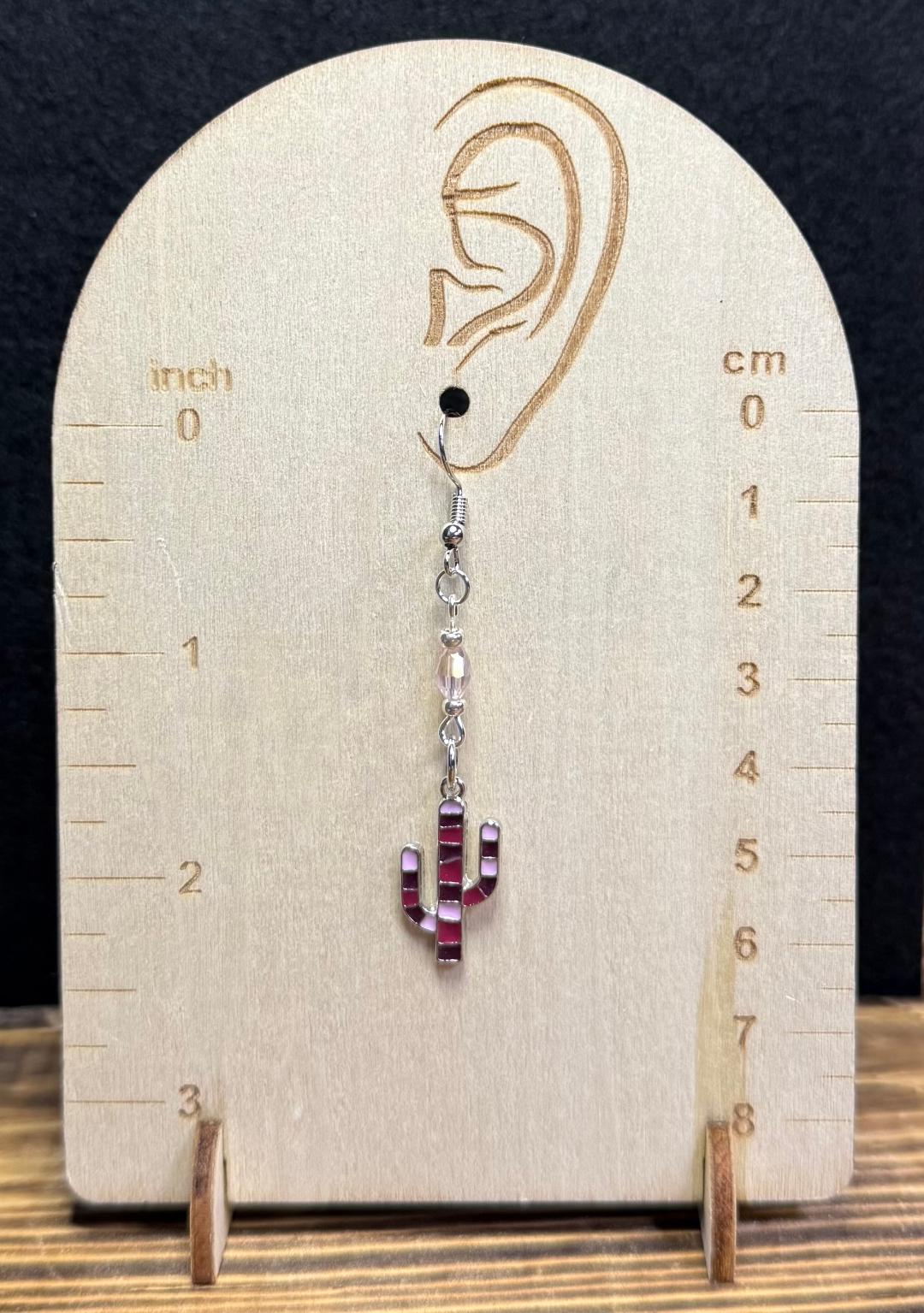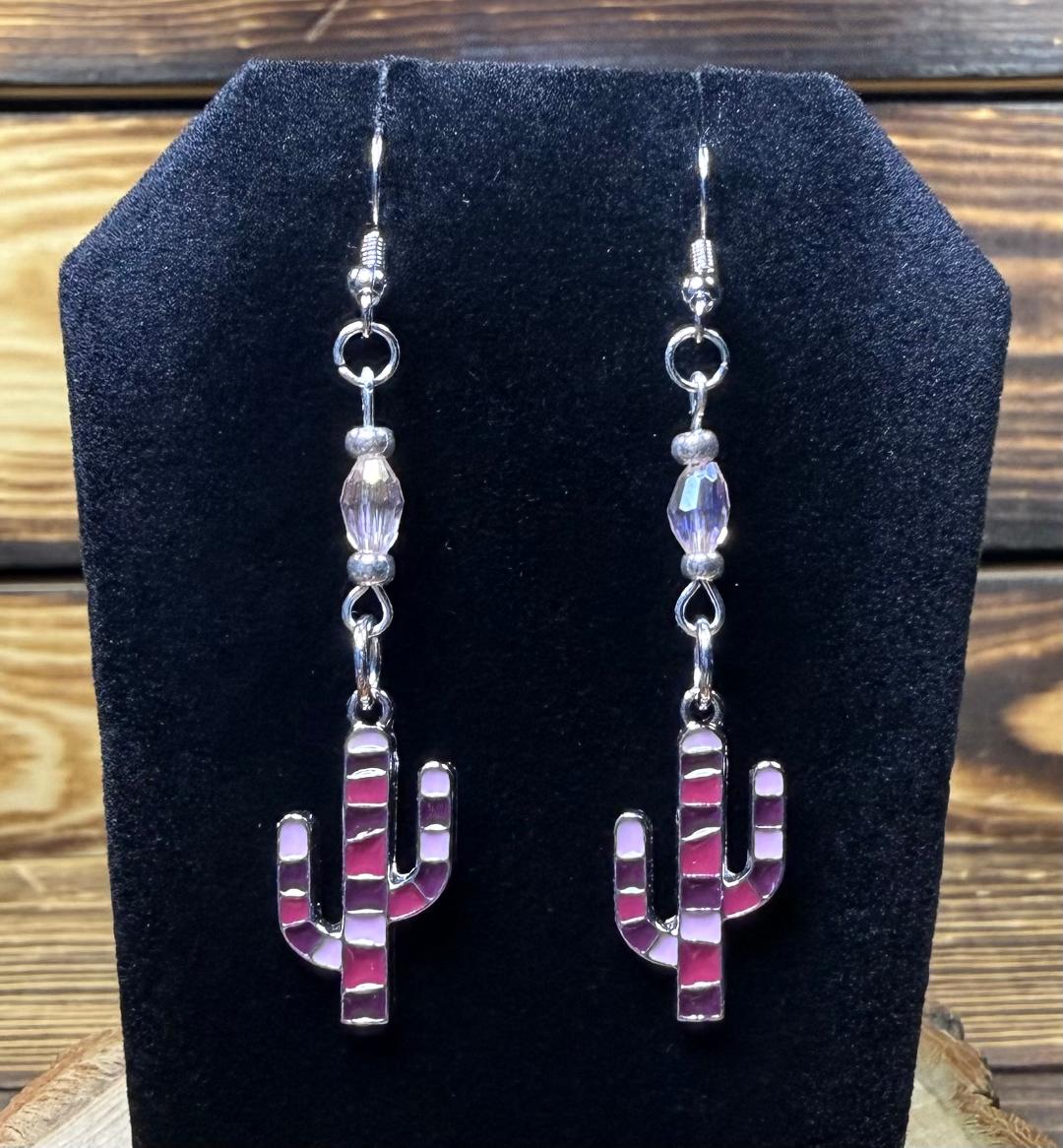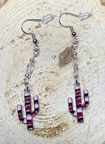 NEW PINK & BURGUNDY CACTUS EARRINGS W/ PALE PINK GLASS BEADS