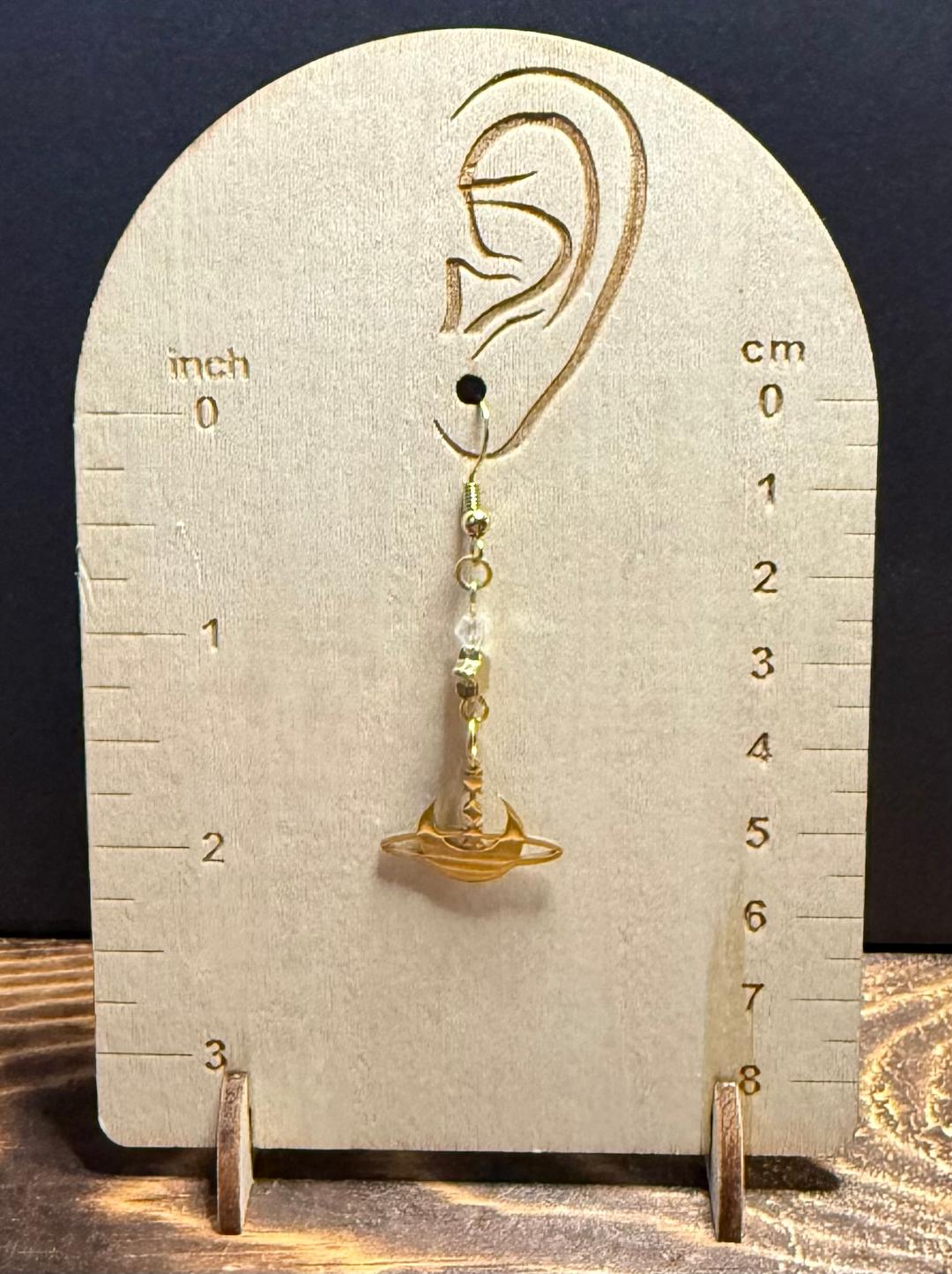 ![]() | Item #: 1006243 Click on image to see more pictures! A dainty gold stainless steel celestial charm featuring a crescent moon & stars. Topped with a faceted clear glass bead, as well as a small gold star bead. Made with 18K gold plated, nickel free earring hooks. Measurement Questions? Price: 18.00 |