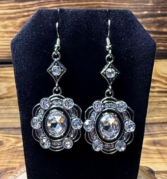 ![]() | Item #: 1006274 Click on image to see more pictures! Turn heads wearing these large rhinestone earrings. They have a slightly scalloped edge, black accenting. Made with nickel free earrings hooks. Measurement Questions? Price: 14.00 |