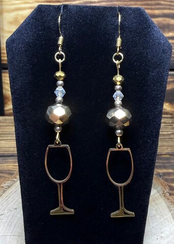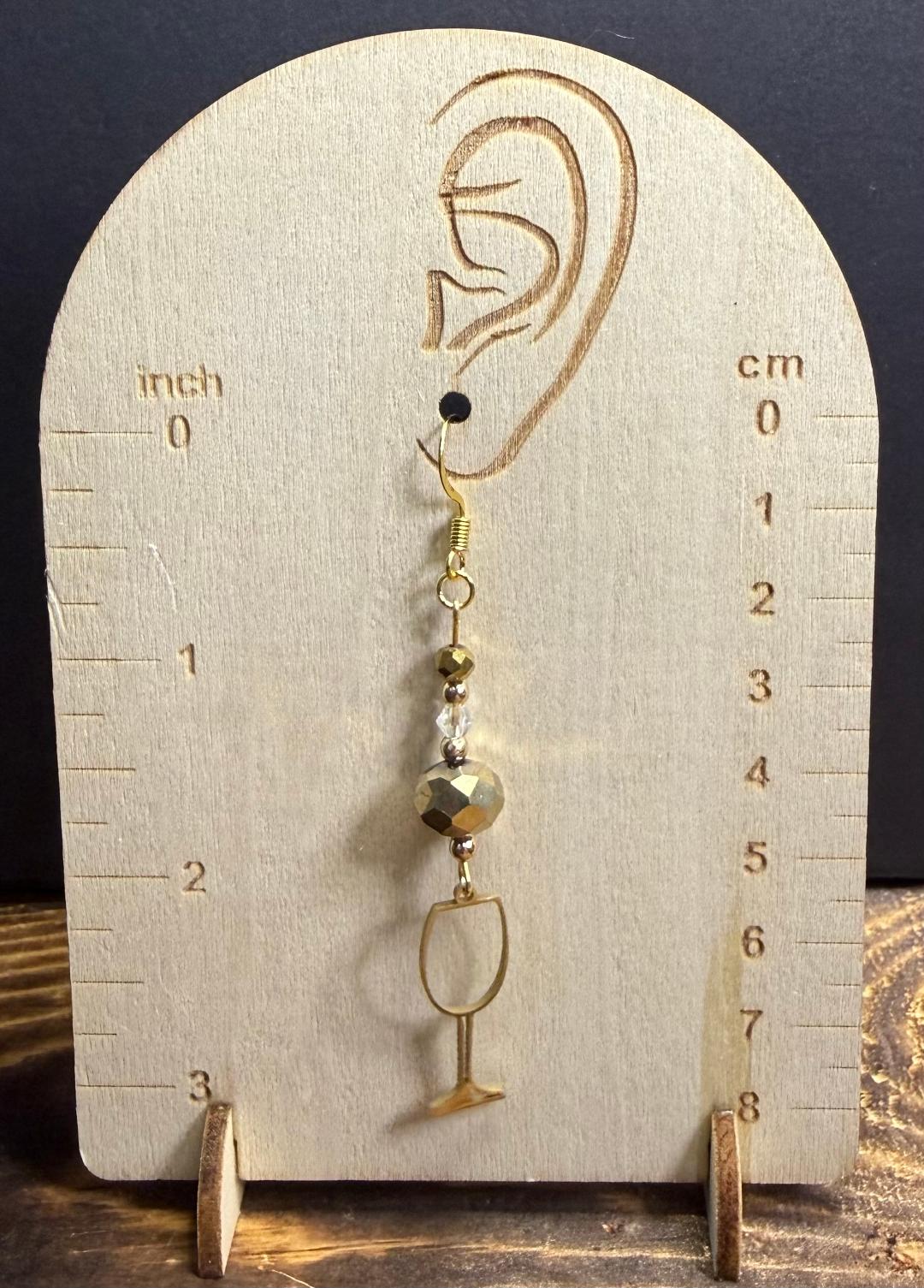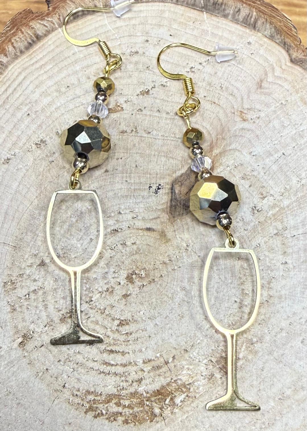 NEW GOLD STAINLESS STEEL WINE GLASS & BEADED EARRINGS