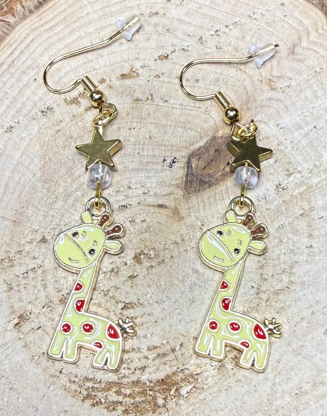 NEW SWEET CARTOON GIRAFFE EARRINGS W/ STARS